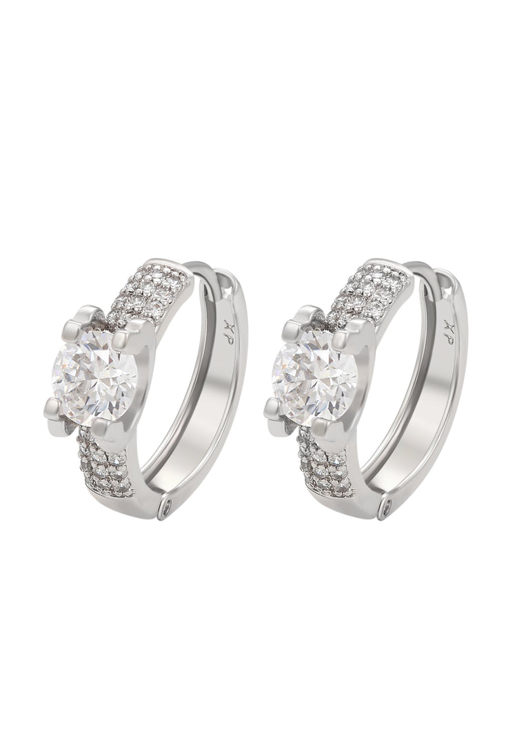These elegant hoop earrings from the Jewelry Collection feature a huggie design, crystal-studded with radiant rhinestones that create a shimmering, shiny pattern on polished copper. Equipped with a secure hinged closure, they combine comfort with effortless wearability. Their versatile and luxurious style makes them the perfect accessory to add a dazzling sparkle and sophisticated elegance to any look.