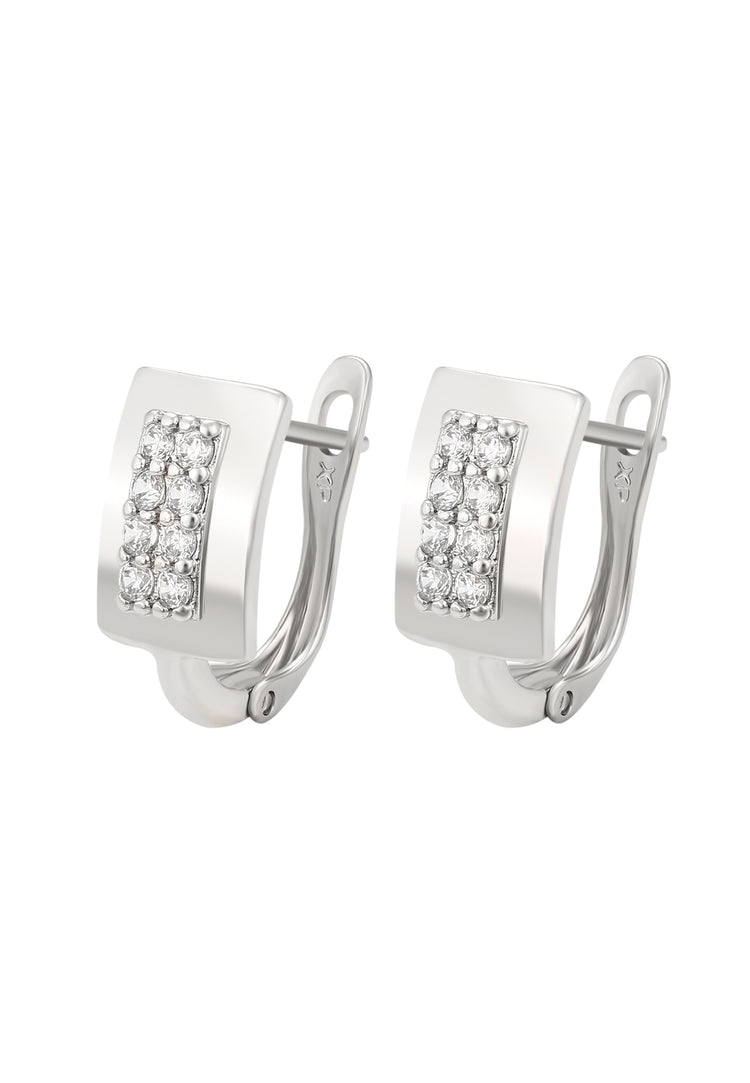 These elegant earrings from the Jewelry Collection are crafted in polished copper with a simple, refined pattern and adorned with sparkling rhinestones. Featuring a secure latch back closure, they offer both comfort and style. Their versatile and shimmering design makes them a timeless accessory, perfect for enhancing any outfit with effortless elegance.