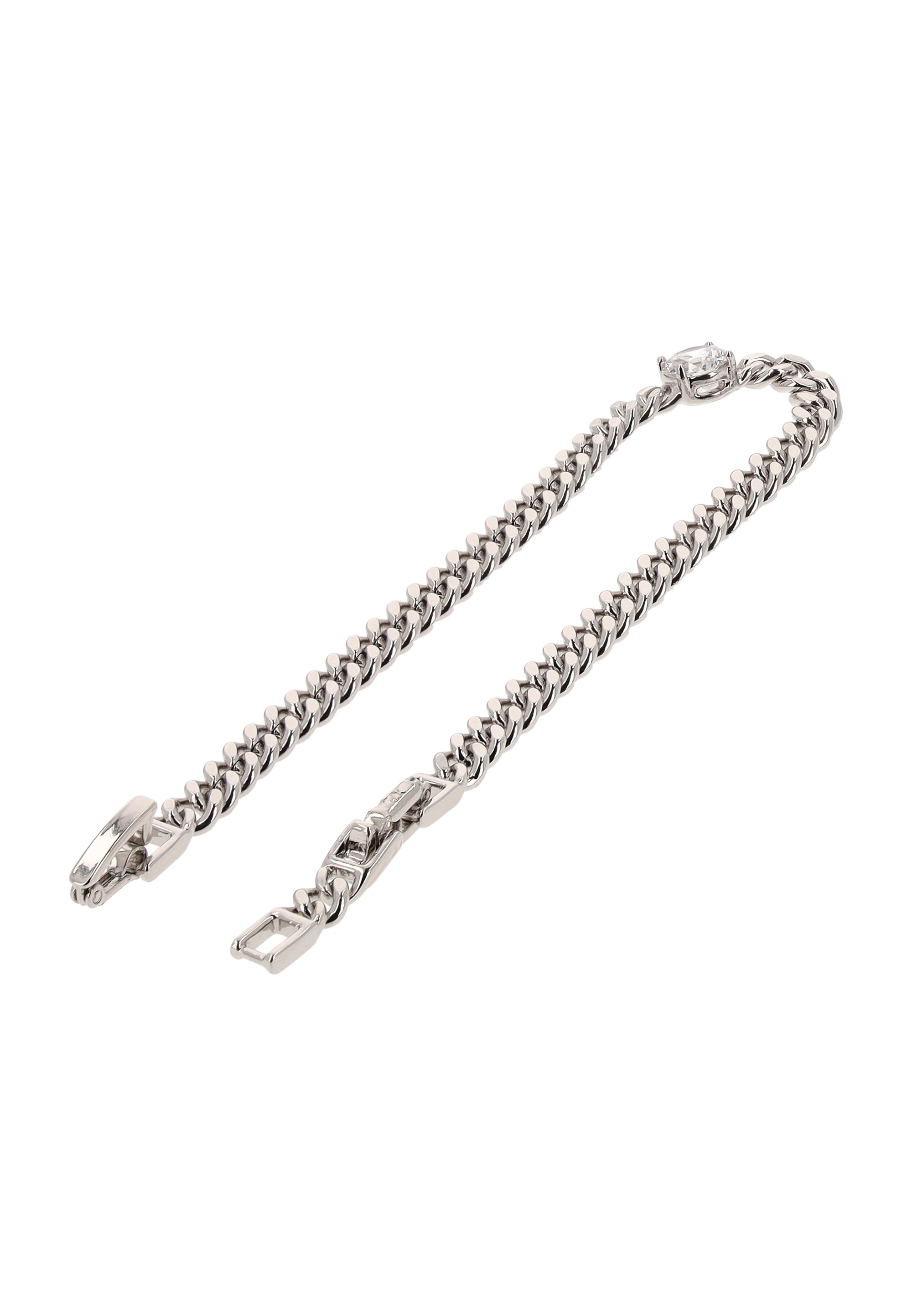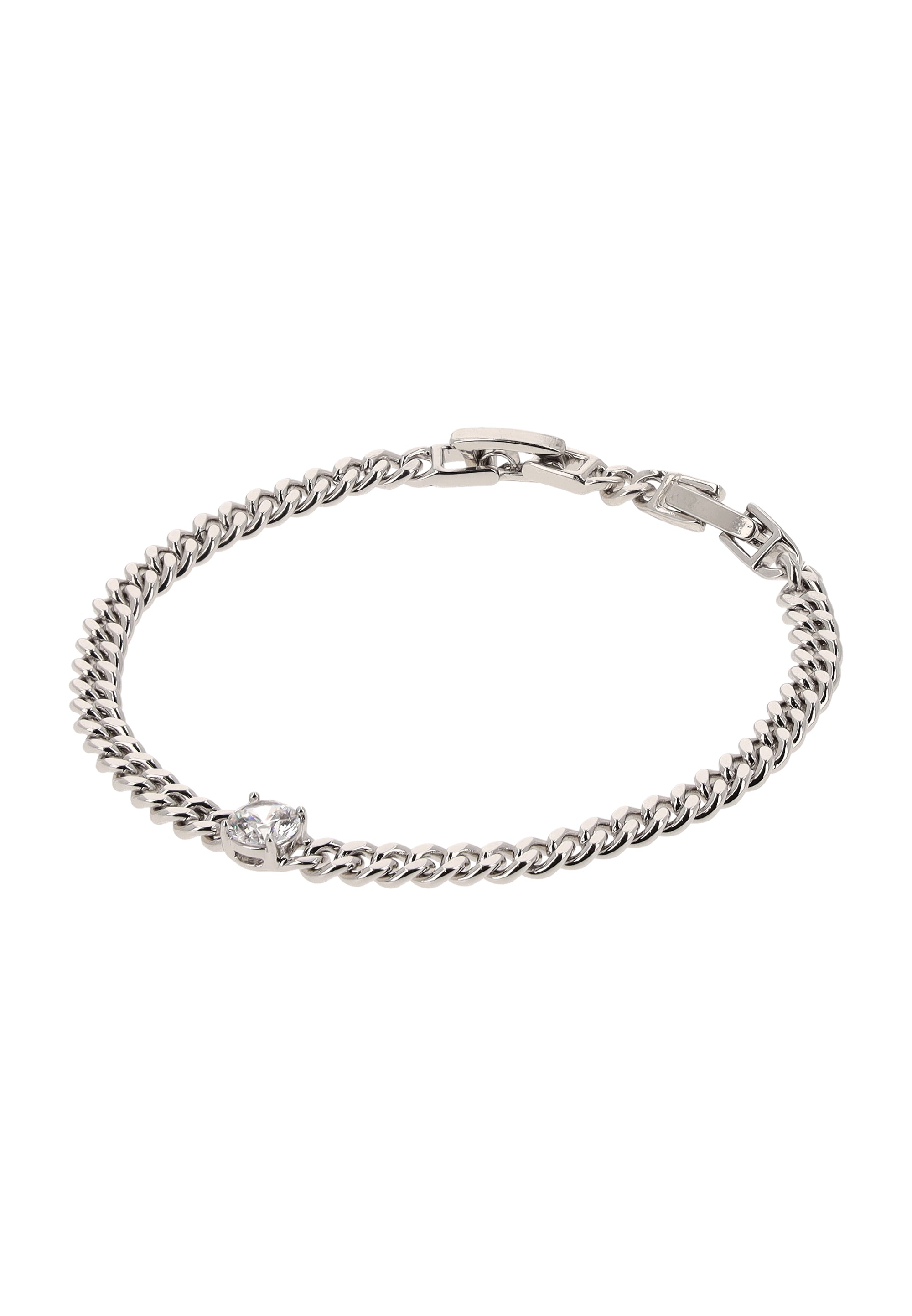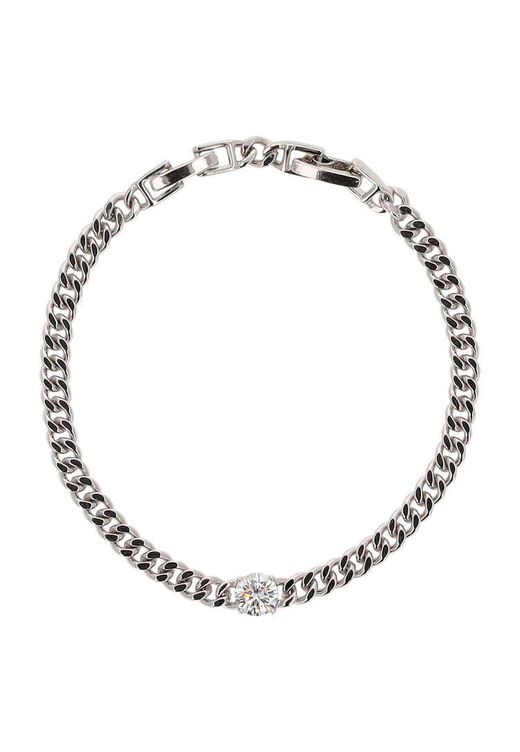 Add timeless elegance to your accessory collection with this crystal-studded curb chain bracelet from our Jewelry Collection. Made from high-quality copper, it features a classic plain pattern that beautifully contrasts with the shimmering crystals. The fold-over clasp ensures a secure and comfortable fit, while the sleek curb chain design adds a touch of modern sophistication. Elegant, shimmering, and effortlessly timelessthis bracelet is perfect for elevating any outfit, day or night.