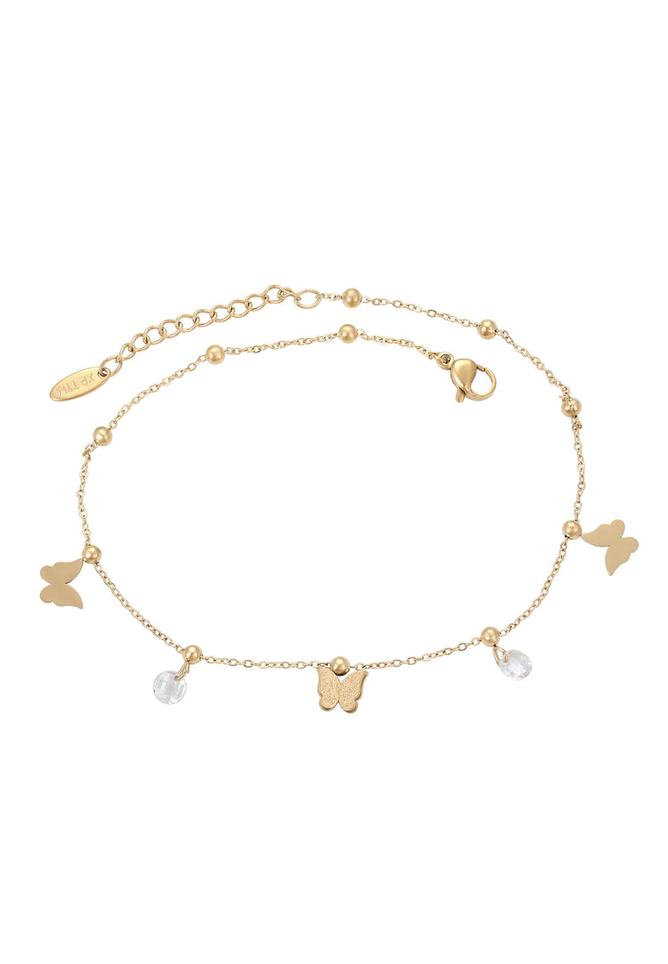 Keyword: beads, butterfly motif, charms, elegant, jewelry collection, lobster clasp, plain pattern, shimmering, stainless steel, station bracelet, thin, timeless