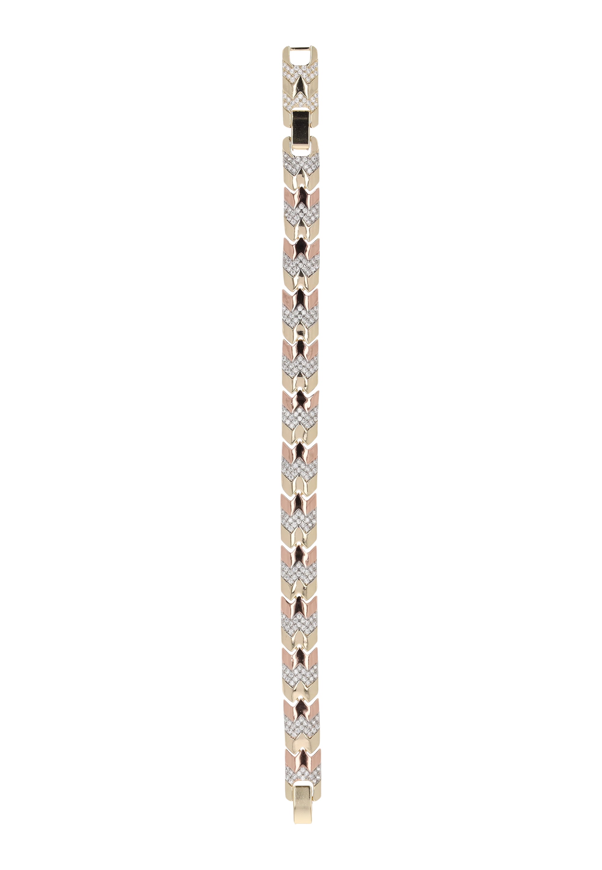 Add a unique sparkle to your outfit with this dazzling link bracelet. Made of copper and decorated with crystals that subtly shimmer in the light, creating a luxurious glow. The multi-tonal, shiny pattern gives the jewelry depth and a unique character, while the sturdy fold-over clasp ensures comfort and security. The classic yet modern design makes the bracelet a timeless accessory that will complement any elegant outfit. It is part of the Jewelry Collection.