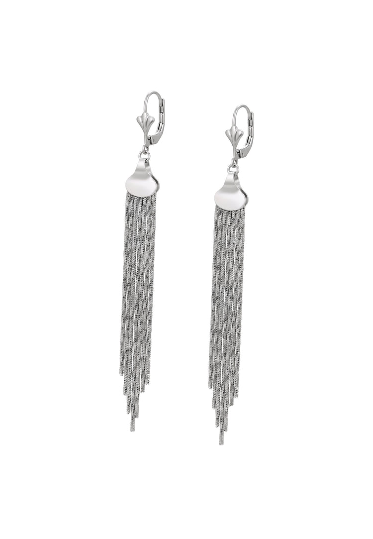 These elegant dangle earrings from the Jewelry Collection are crafted in copper and feature a stylish multi-chain design with a plain patterned finish. Featuring a secure latch back closure, they combine comfort with timeless sophistication. Their versatile design makes them a perfect accessory to elevate both everyday outfits and special occasions with effortless elegance.