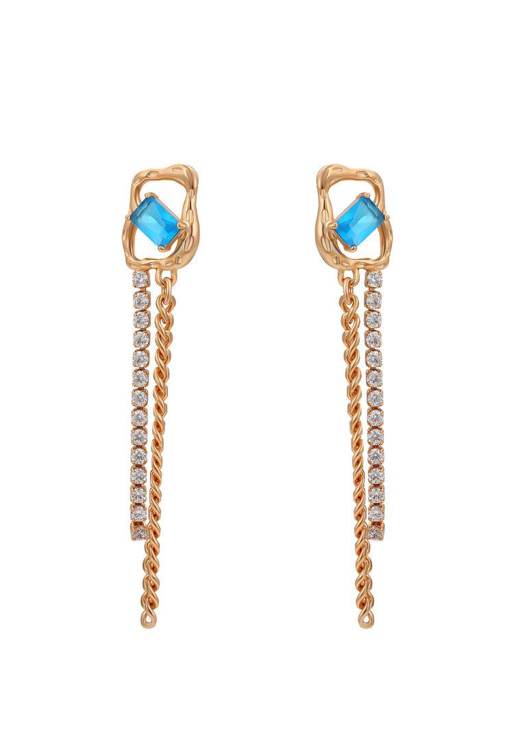 These elegant dangle chain earrings from the Jewelry Collection are crafted in copper and crystal-studded with sparkling rhinestones for a dazzling, shimmering effect. Featuring a secure butterfly clutch, they combine comfort with refined elegance. Their shiny patterned finish enhances their sophisticated design, making them a timeless accessory to elevate any outfit with effortless glamour.
