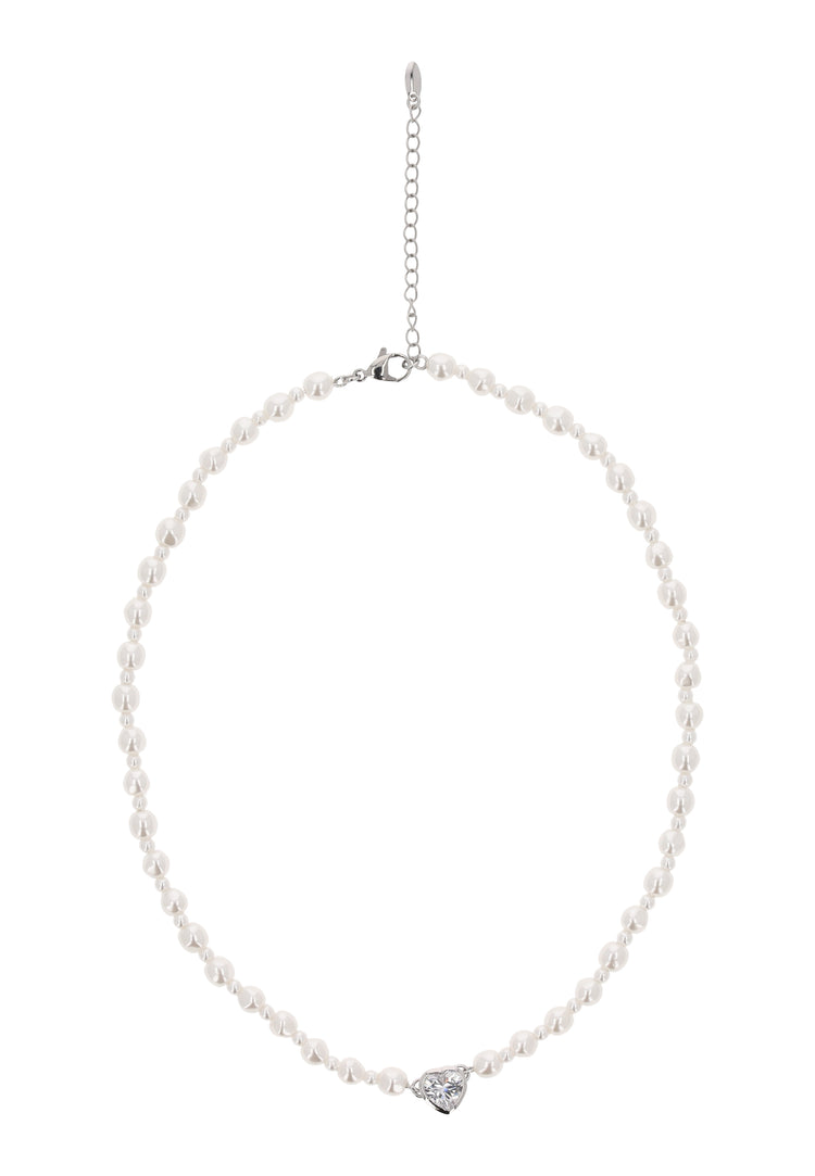 Add a touch of romance with this pearl necklace from our Jewelry Collection. Featuring a heart-shaped rhinestone pendant and made entirely from lustrous pearls, it is made from copper with a plain pattern and secured with a lobster clasp. Elegant, shimmering, and timeless, this necklace brings refined sophistication and a sparkling accent to any outfit. Perfect for both everyday wear and special occasions, its a versatile and eye-catching piece.