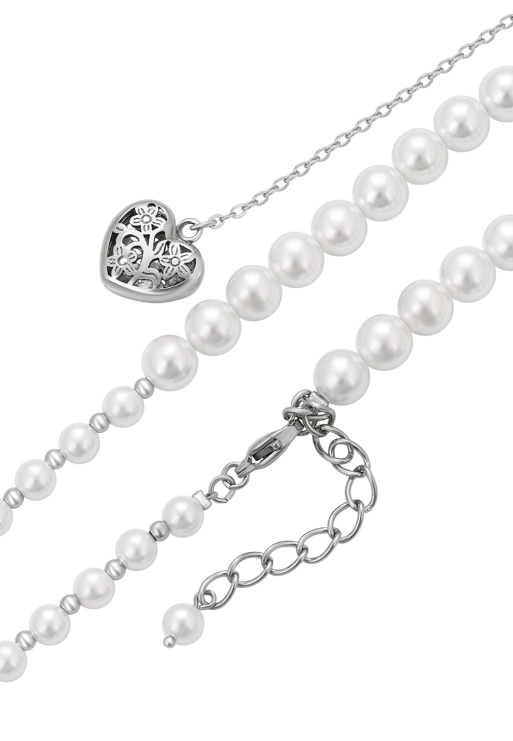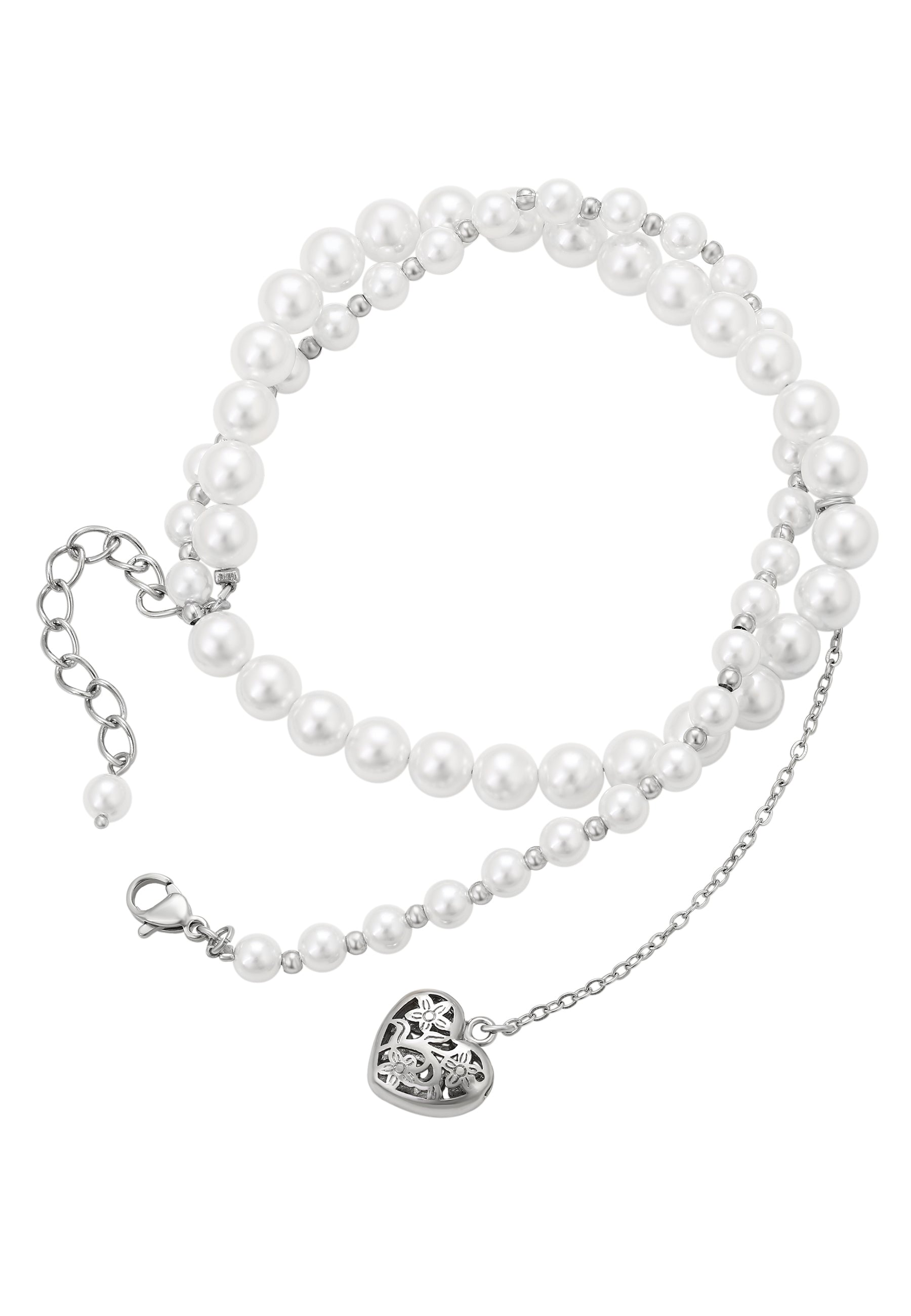 Add a touch of elegance with this pearl necklace from our Jewelry Collection. Featuring a heart-shaped pendant and accented with delicate beads along the chain, it is made from copper with a plain pattern and secured with a lobster clasp. Elegant, versatile, and timeless, this necklace brings refined sophistication to any outfit. Perfect for elevating both everyday looks and special occasions with subtle charm.