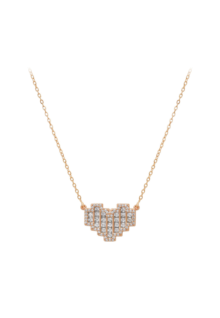 Add a touch of romance with this chain necklace from our Jewelry Collection. Featuring a heart-shaped pendant adorned with shimmering rhinestones, it is made from copper with a shiny finish and secured with a lobster clasp. Elegant, shimmering, and timeless, this necklace brings refined sophistication to any outfit, perfect for both everyday wear and special occasions.