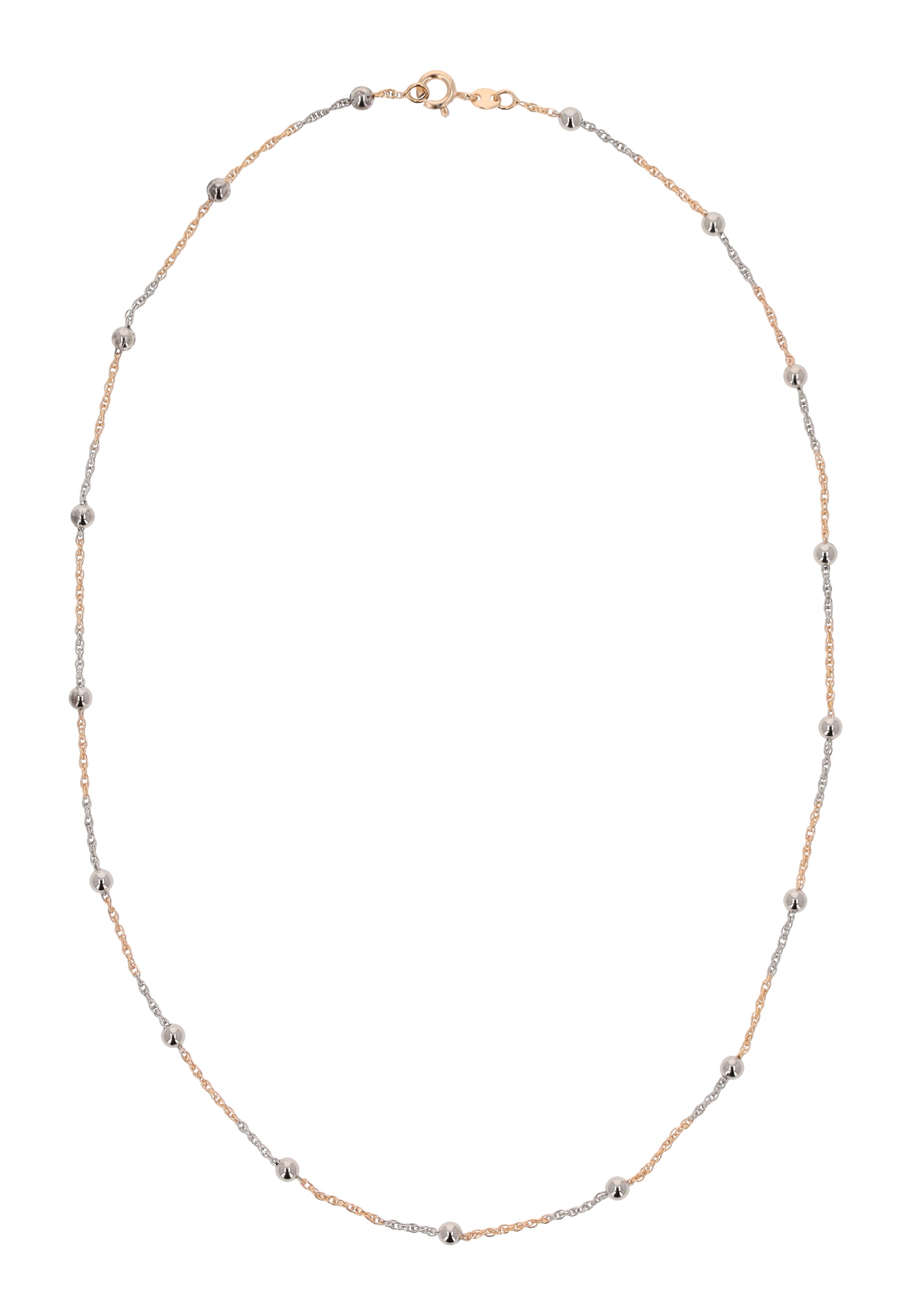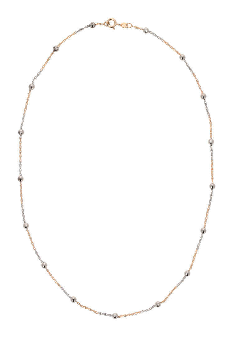 This elegant copper chain necklace, adorned with beads, captivates with its multi-tone pattern, giving it depth and unique character. A sturdy lobster clasp ensures comfort and durability. A stylish addition to elegant outfits. Part of the Jewelry Collection.