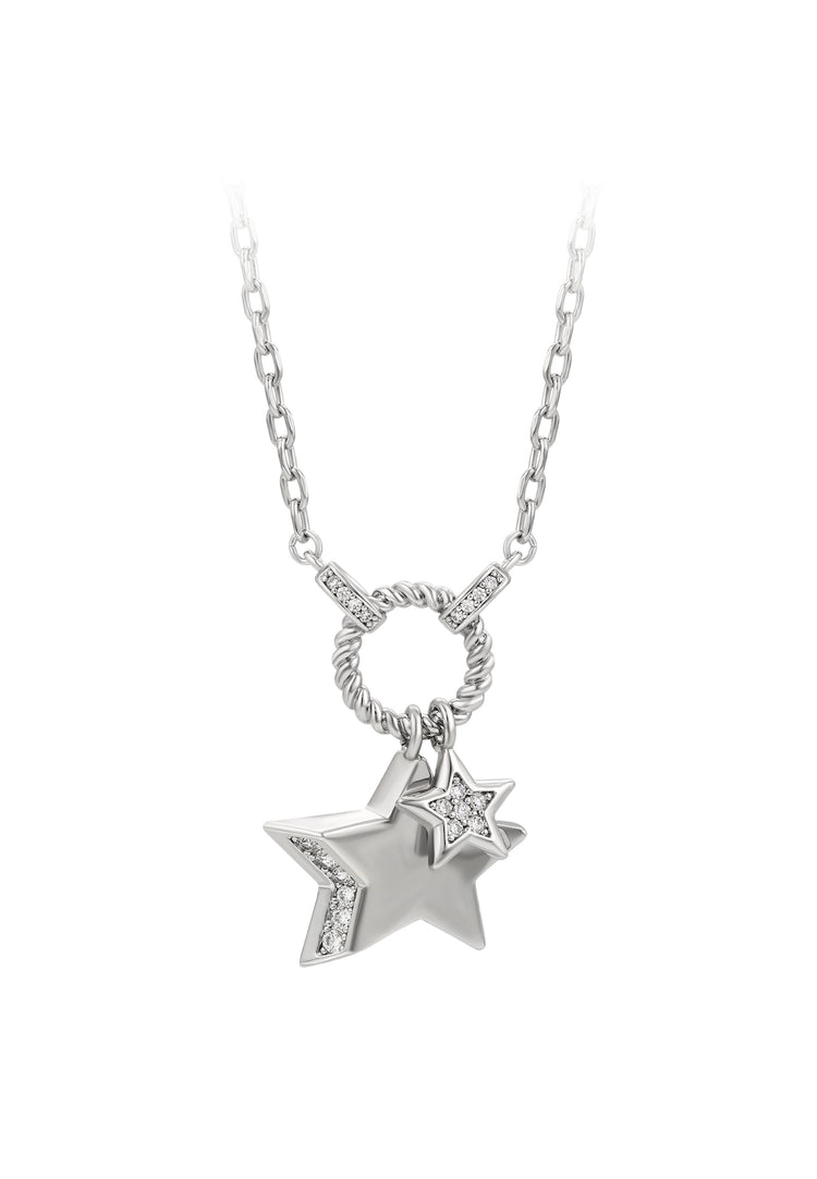Shine bright with this chain necklace from our Jewelry Collection. Featuring a star-shaped pendant adorned with shimmering rhinestones, it is made from copper with a plain pattern and secured with a lobster clasp. Elegant, shimmering, and timeless, this necklace adds a refined sparkle to any outfit, perfect for both everyday wear and special occasions.
