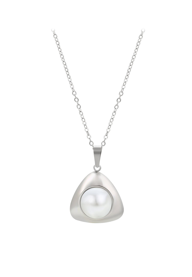 Elevate your style with this chain necklace from our Jewelry Collection. Featuring a pendant accented with a pearl, it is made from durable stainless steel with a plain pattern and secured with a lobster clasp. Elegant, versatile, and timeless, this necklace adds refined charm to any outfit. Perfect for both everyday wear and special occasions, it brings a touch of classic sophistication to your jewelry collection.
