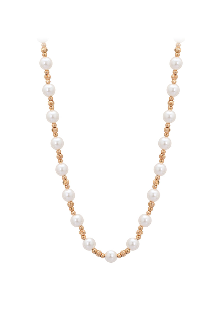 Add timeless elegance with this beaded necklace from our Jewelry Collection. Featuring lustrous pearls on a delicate chain, it is made from copper with a plain pattern and secured with a lobster clasp. Elegant, versatile, and timeless, this necklace complements any outfit, perfect for both everyday wear and special occasions.