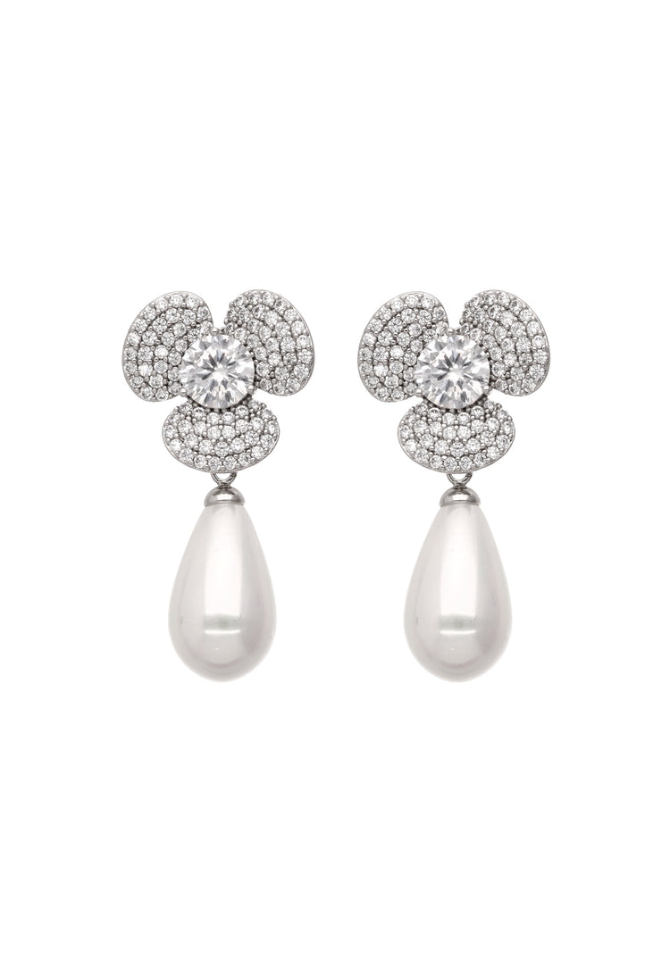 Bring elegance and sparkle to your look with these drop earrings featuring a floral motif from our Jewelry Collection. Crafted from high-quality copper, they are crystal-studded and adorned with pearls and rhinestones on a shiny pattern for a shimmering and elegant finish. Secured with a butterfly clutch, these timeless and versatile earrings are perfect for elevating everyday outfits or adding a refined accent to special occasions.