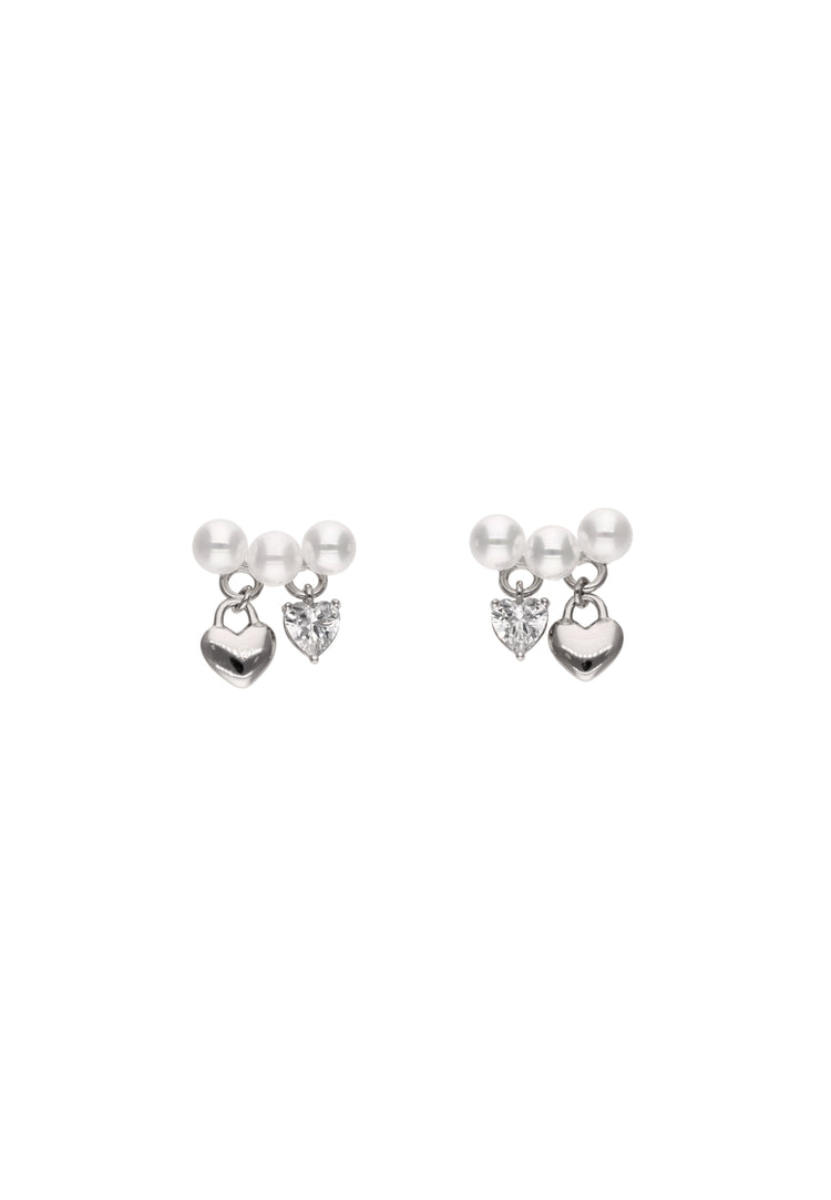 Add a subtle touch of class and charm to your jewelry with these timeless stud earrings. Made from a copper base, adorned with delicate pearls and charming heart-shaped charms, they perfectly combine elegance with everyday versatility. The butterfly clasp ensures comfort, and the simple yet chic design makes these earrings perfect for evening wear. They are part of the Jewelry Collection.