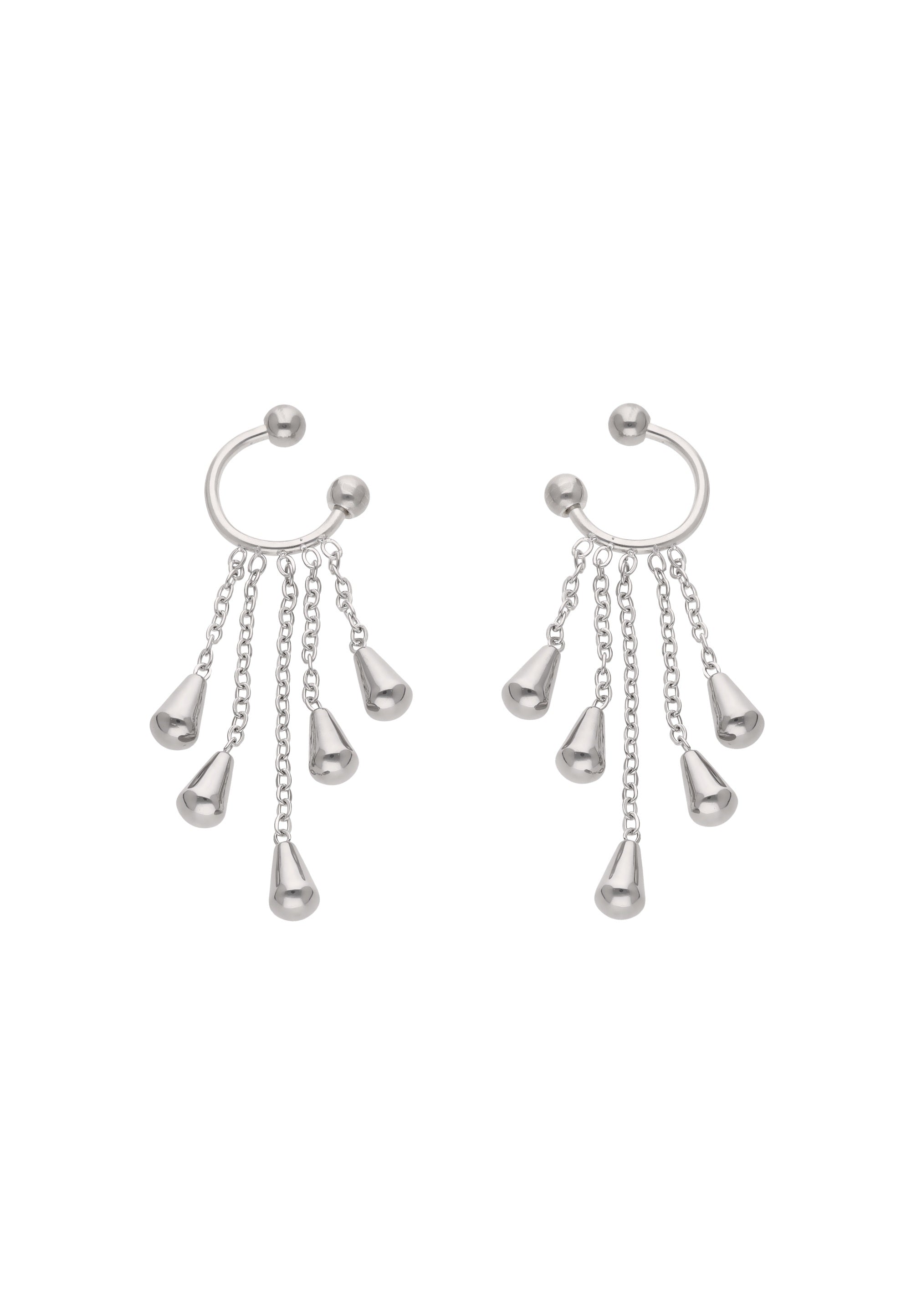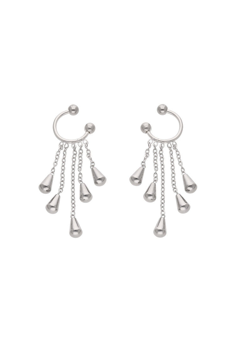 Make a subtle yet striking statement with these cuff earrings from our Jewelry Collection. Crafted from high-quality stainless steel, they feature delicate chain fringe details and refined bead accents for a touch of modern elegance. With their sleek plain pattern and timeless design, these versatile earrings effortlessly complement both casual and sophisticated looks, adding a graceful finish to any ensemble.