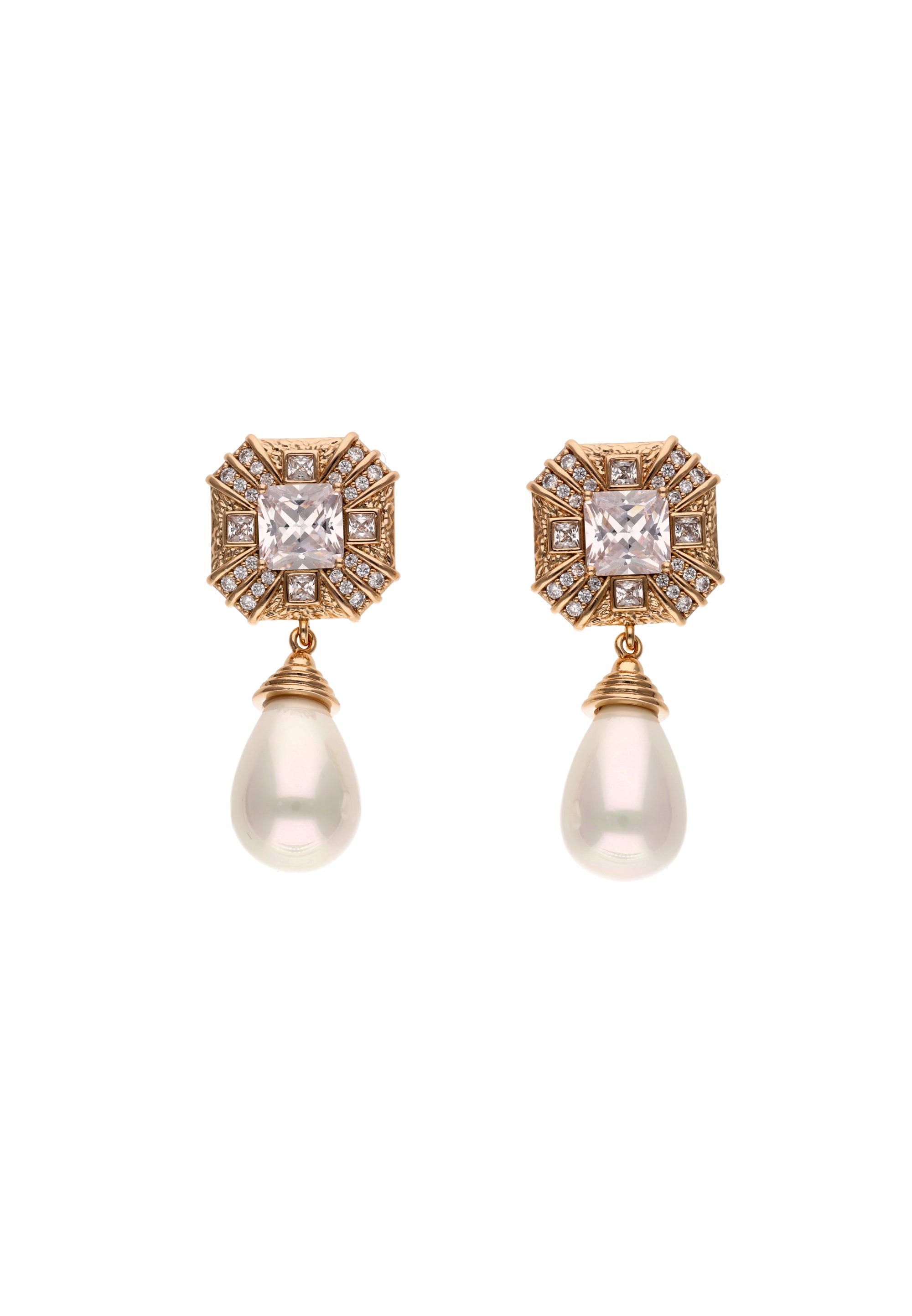 Add a touch of luxurious sparkle to your look with these drop earrings, intricately embellished with crystals, cubic zirconia, and pearls, which subtly reflect light, creating a striking, shimmering shimmer. Crafted from high-quality copper, they showcase a sparkling design that combines elegance with timeless style. The butterfly clutch closure ensures secure and comfortable wear. These earrings are the perfect addition to unique styles. They are part of the Jewelry Collection.