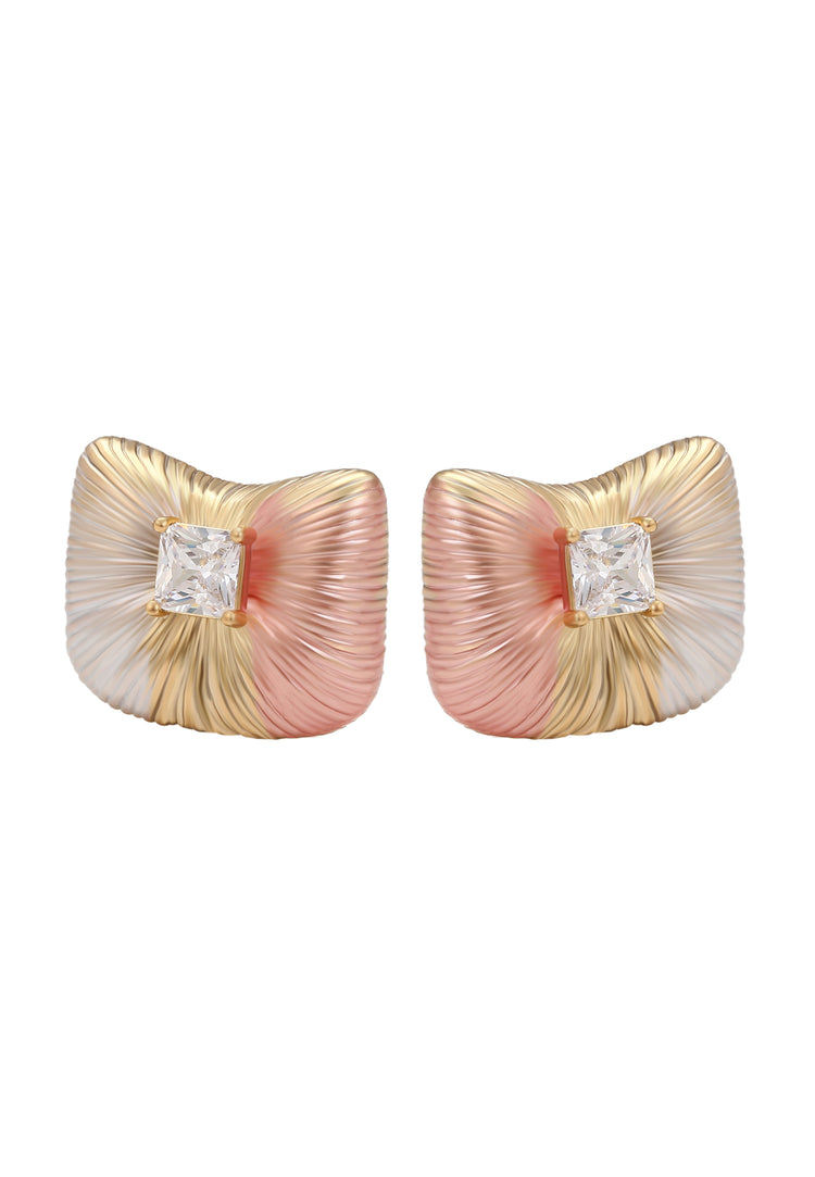 These elegant crystal-studded stud earrings from the Jewelry Collection are crafted from copper with a multi-tone textured pattern, creating a shimmering, sophisticated look. Secured with a classic butterfly clutch, they provide both comfort and ease of wear. Their timeless design makes them a versatile accessory to elevate any outfit with effortless elegance.