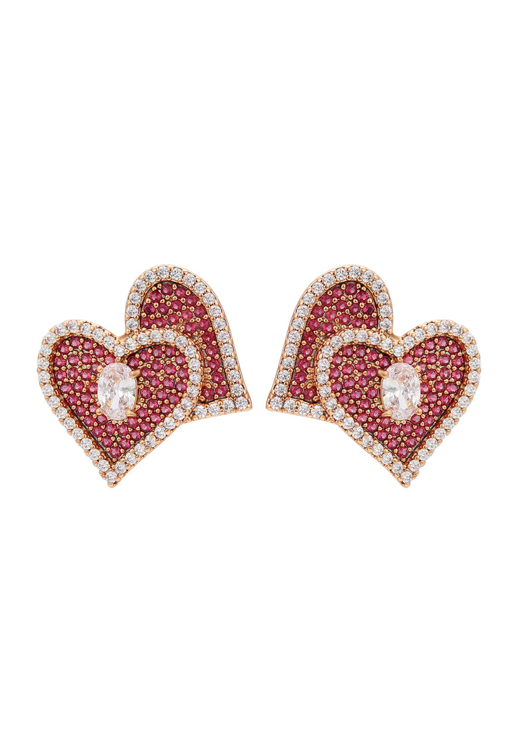 These elegant stud earrings from the Jewelry Collection feature a charming heart motif, crystal-studded and adorned with sparkling rhinestones, crafted from copper with a shiny patterned finish for a shimmering, refined look. Secured with a classic butterfly clutch, they provide both comfort and timeless style. Their sophisticated design makes them a versatile accessory to elevate any outfit with effortless elegance.