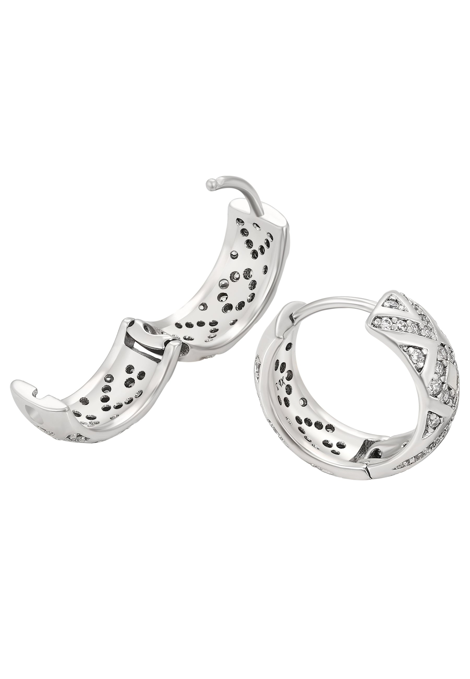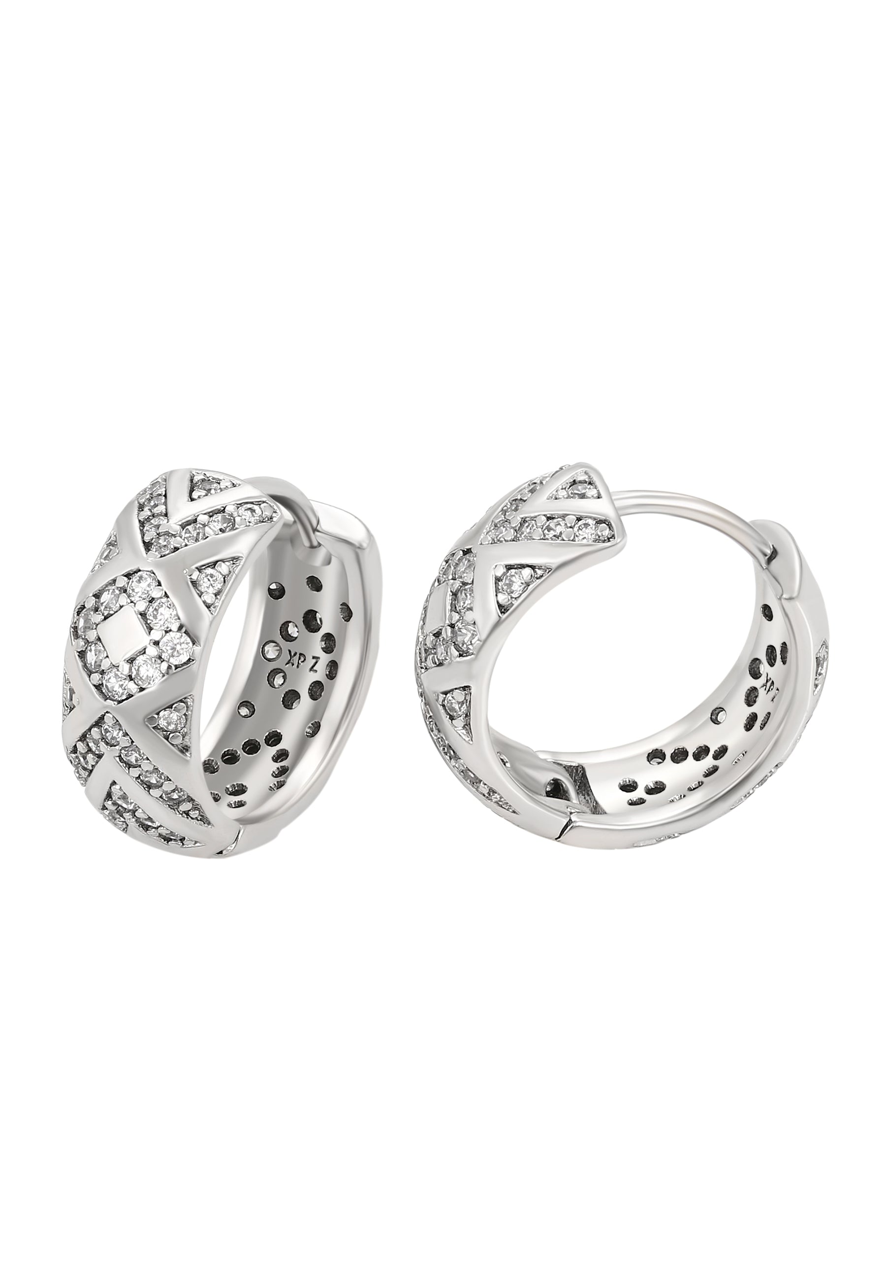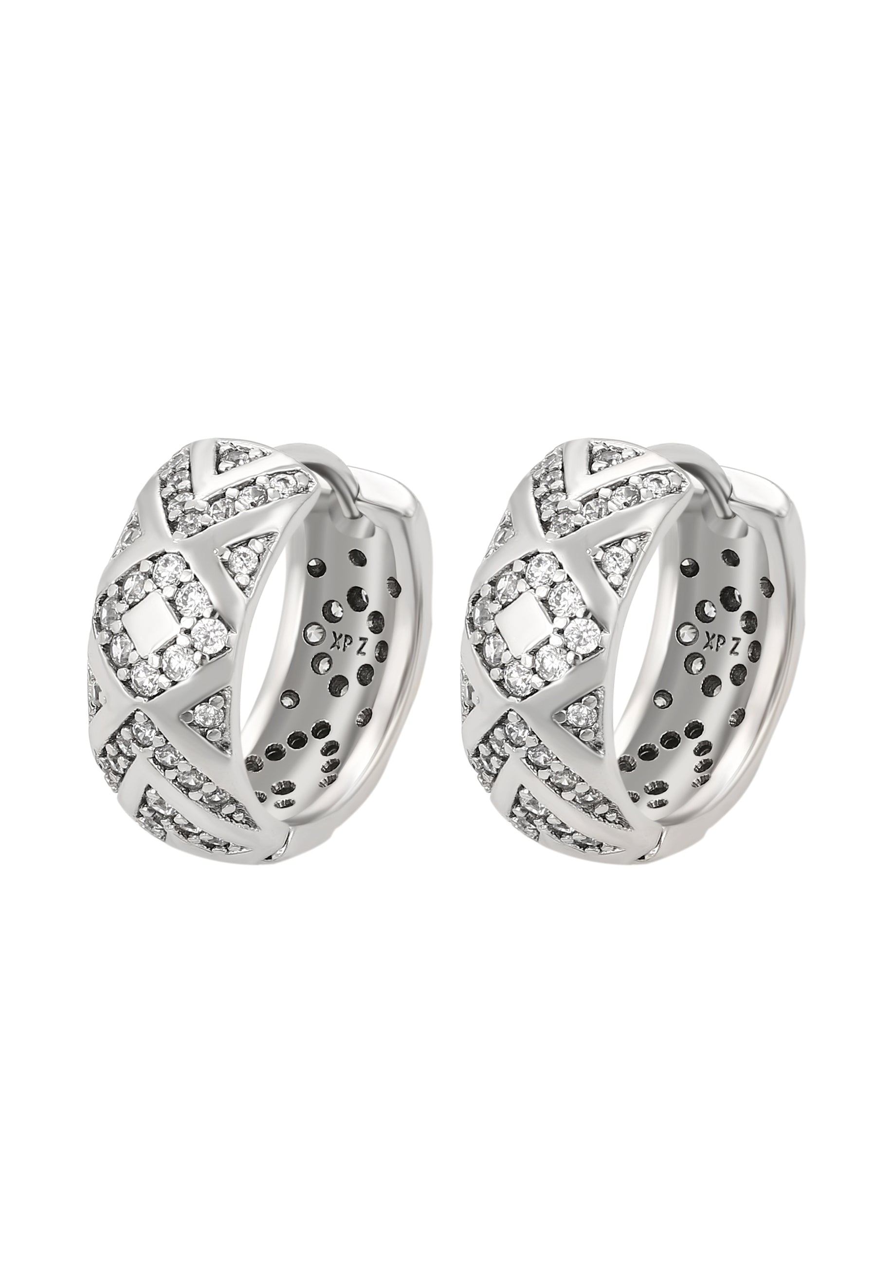 These elegant hoop huggie earrings from the Jewelry Collection are crafted from copper and embellished with shimmering rhinestones, creating a dazzling, refined look. Designed with a secure hinged closure, they ensure both comfort and style. The shiny patterned finish adds a touch of sophistication, making them a timeless accessory that complements any outfit with effortless elegance.