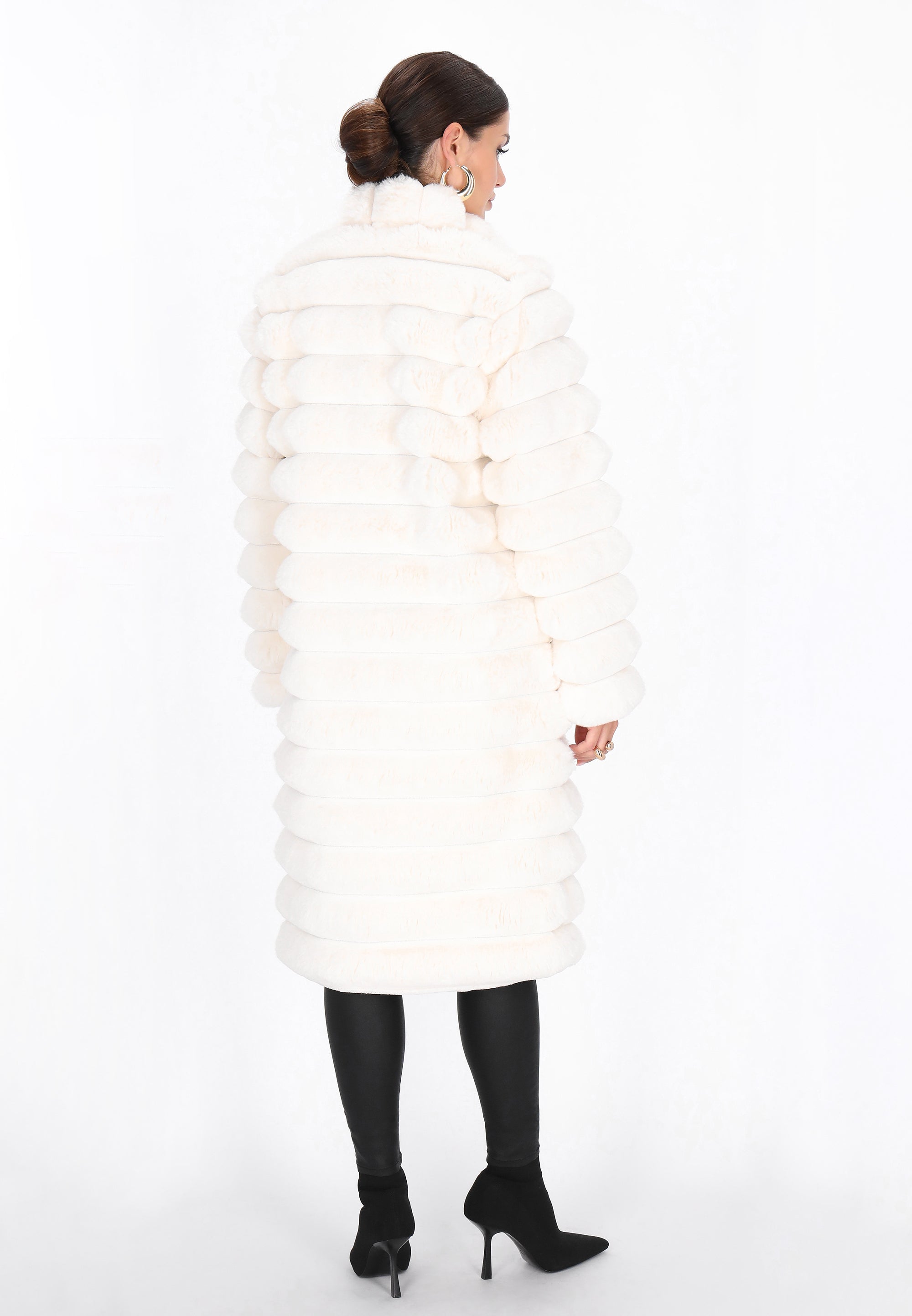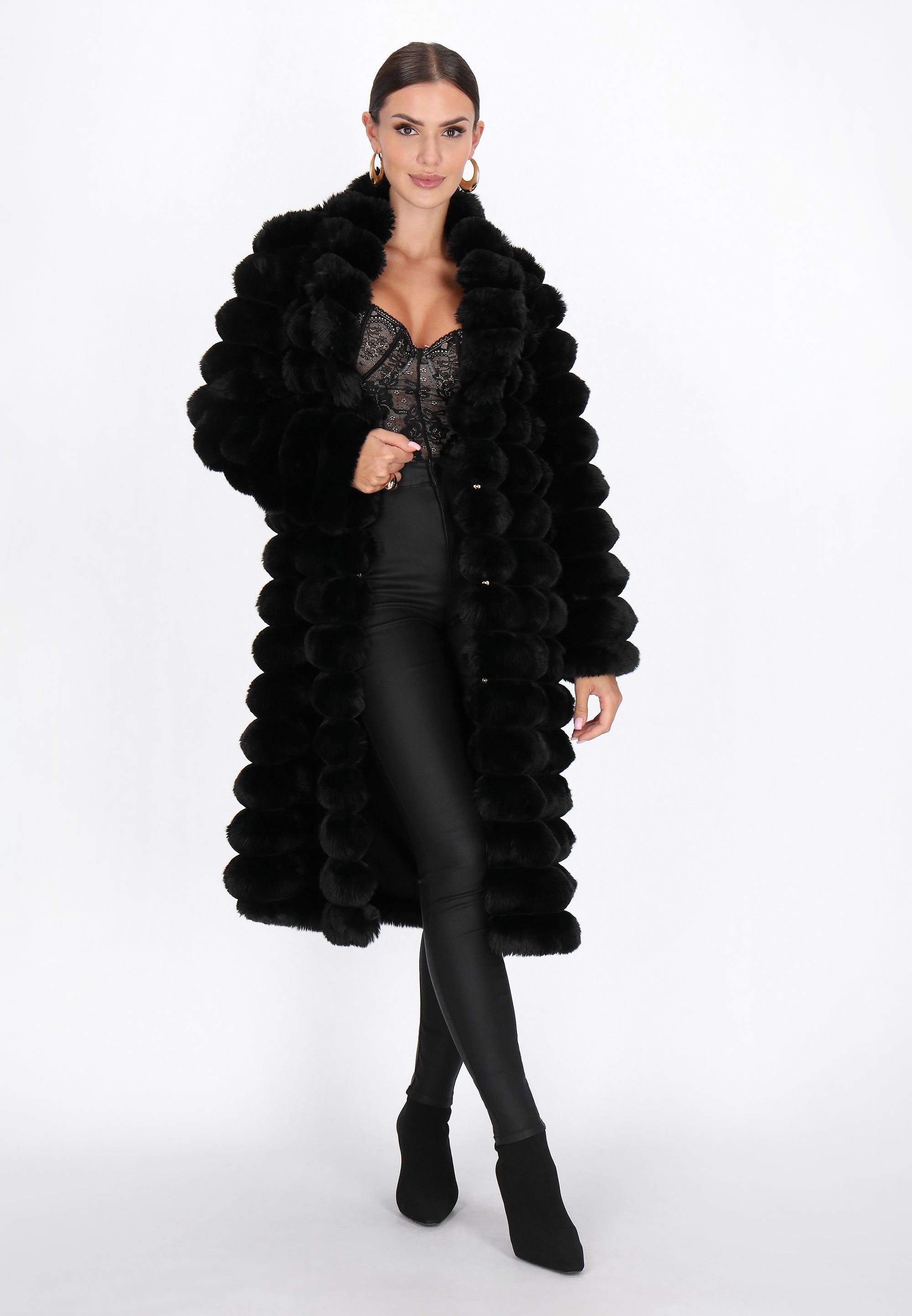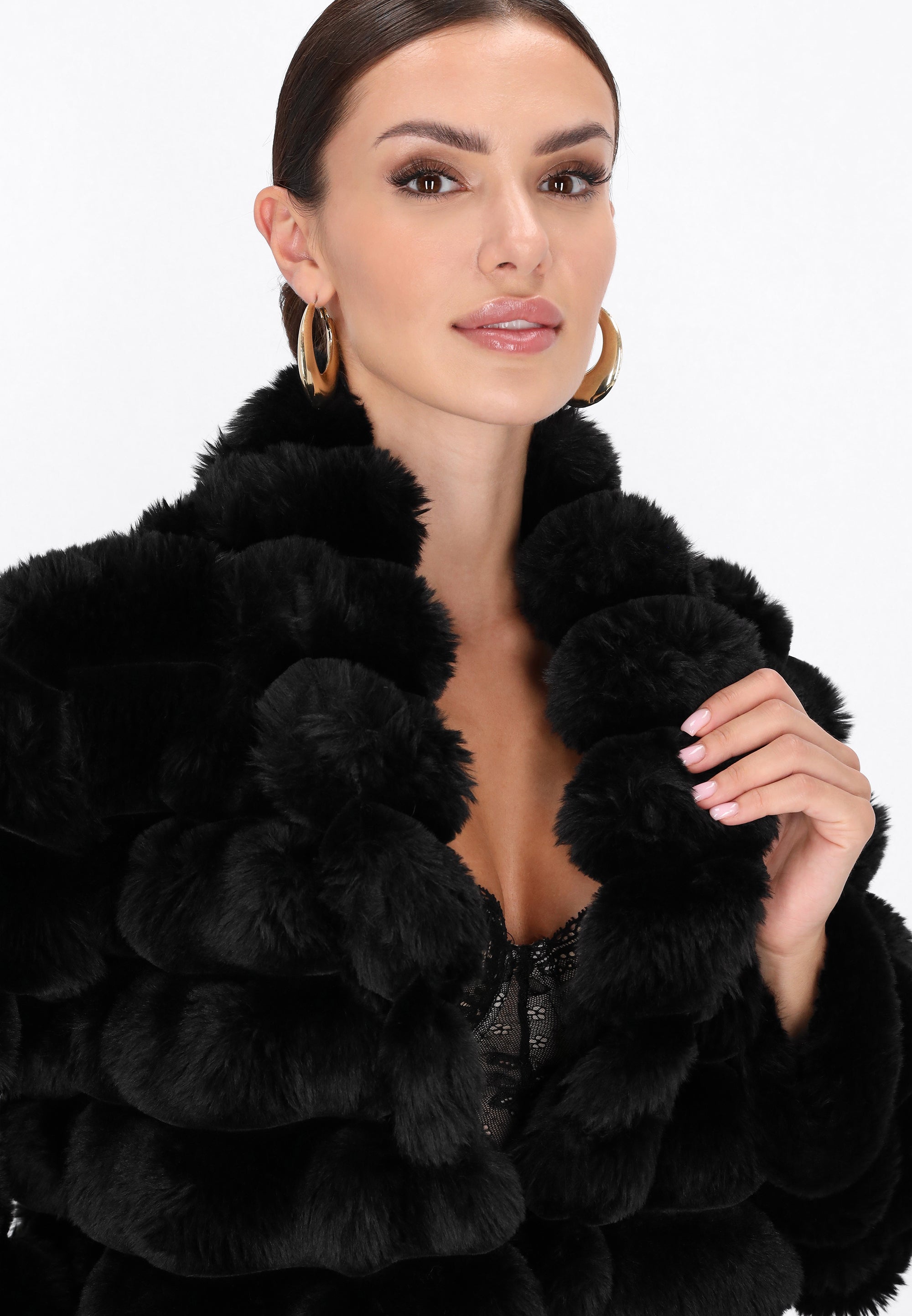 Bring elegance and comfort to your winter closet with this unique coat from the Fashion Look Collection. Made of faux fur, it features a quilted trim that adds a chic and cozy touch. The loose fit guarantees freedom of wear, while the shawl collar beautifully wraps the neck for extra warmth. Long sleeves make the coat perfect for cold days. It's the perfect combination of comfort, style and a chic look.