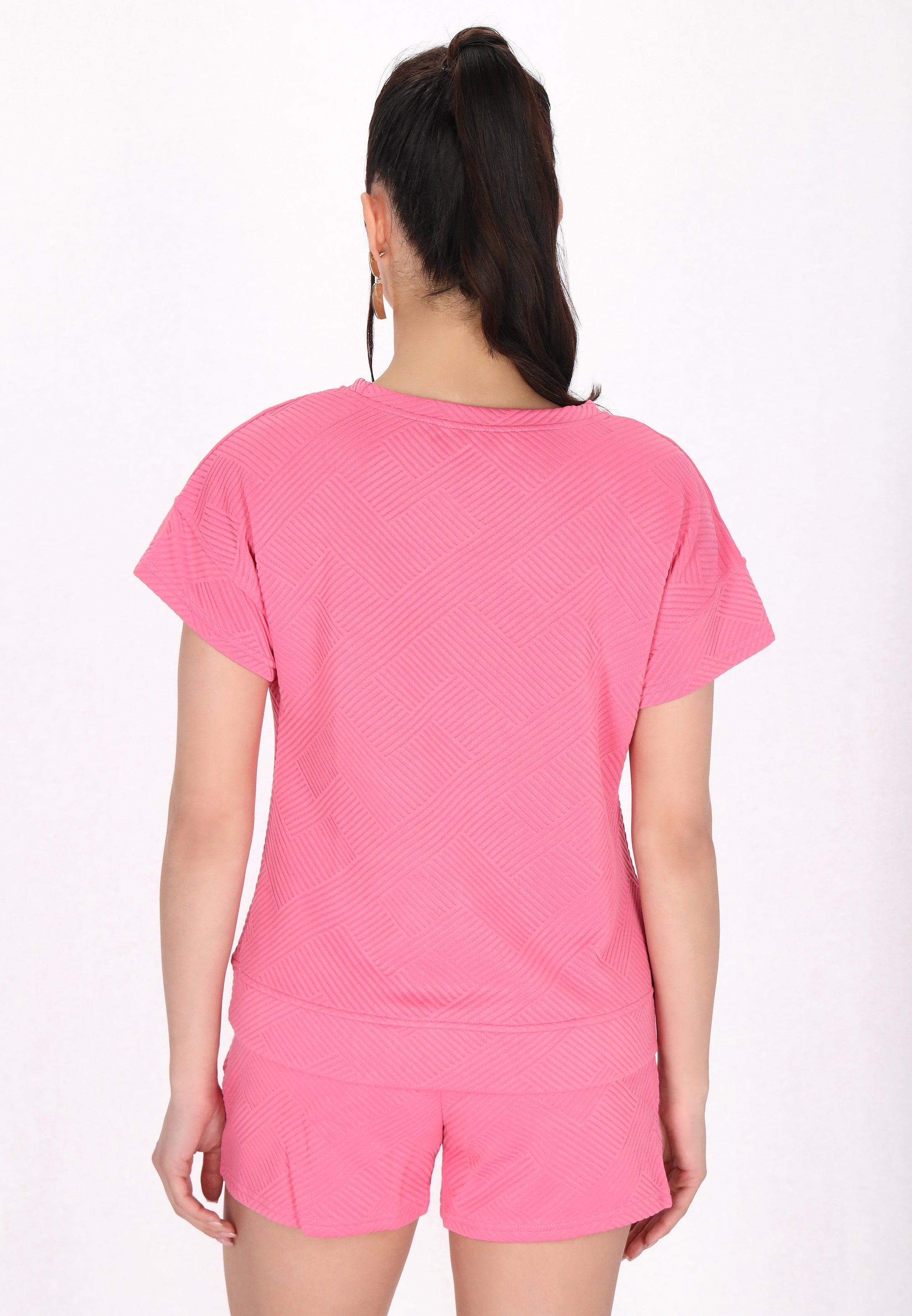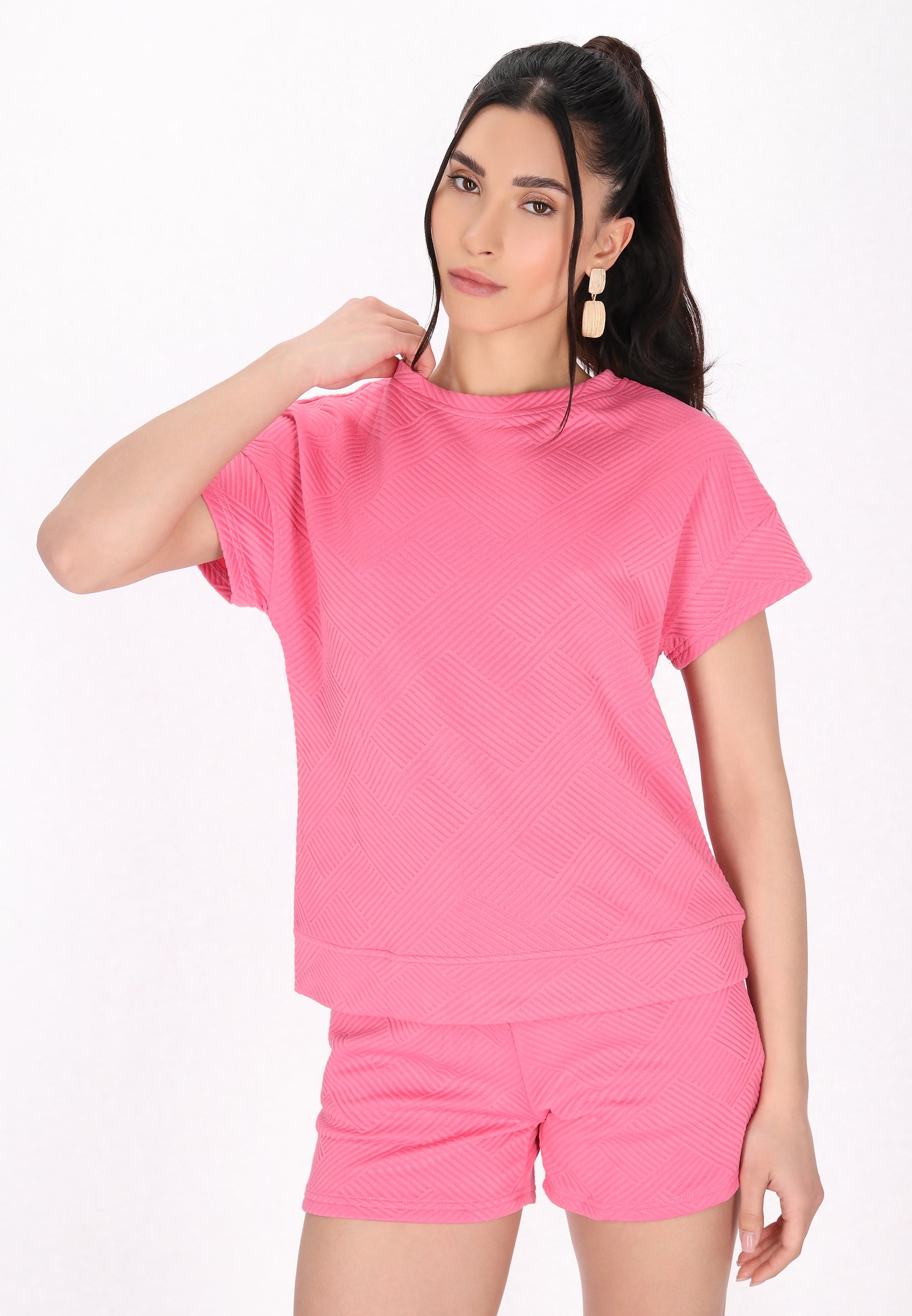 Keyword: casual, comfy, embossed pattern, everyday fashion, fashion look collection, knitted, regular fit, round neck, short sleeves, stylish, t-shirt