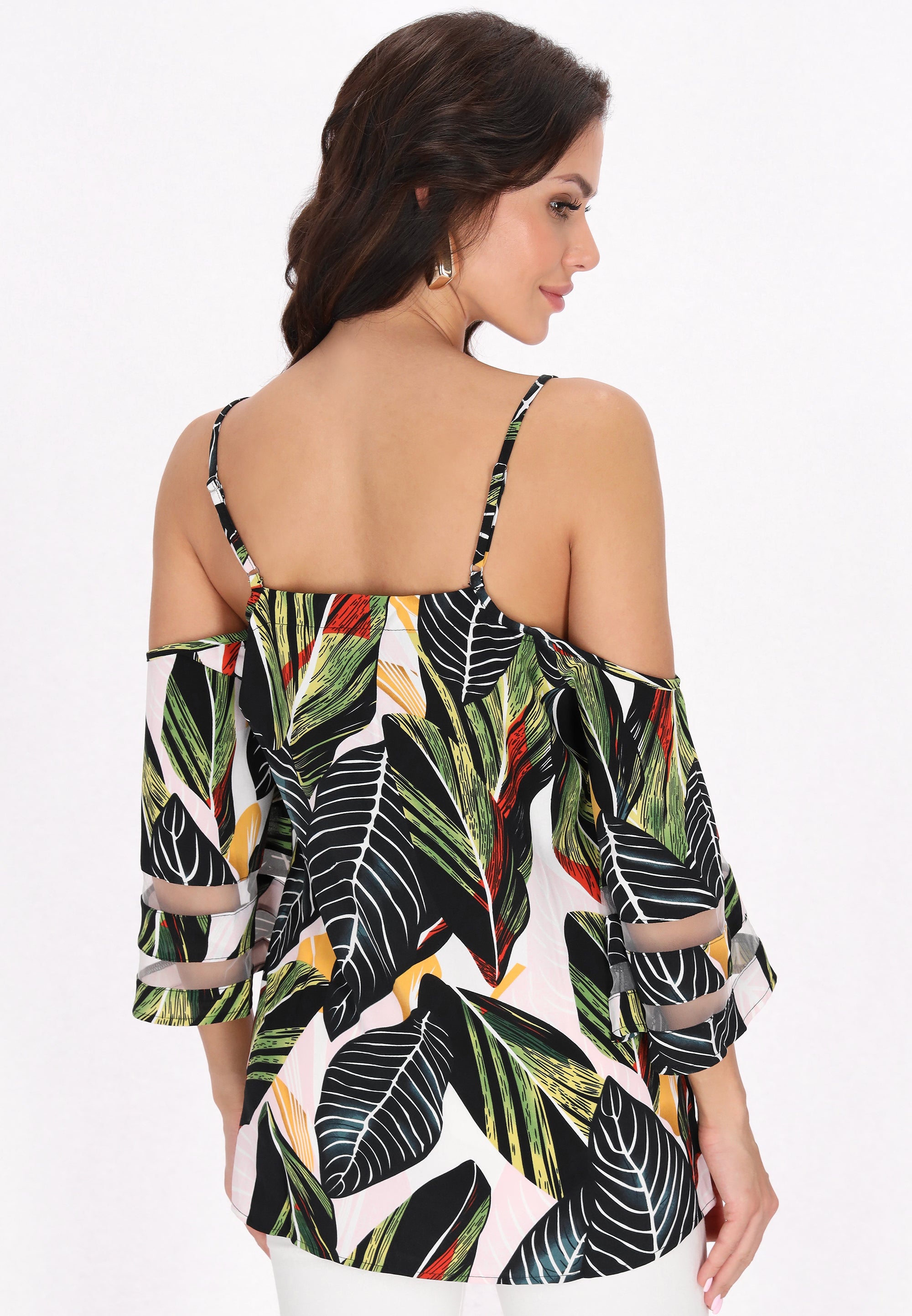 Add a romantic touch to your everyday styling with this airy floral-patterned blouse, made for fashionable women who appreciate style and comfort. The blouse features a scoop neckline, loose fit and wide 3/4 sleeves with a striking cold shoulder cut and delicate shoulder straps. Transparent panels add subtle charm and lightness, while the plaid fabric with a floral print sits beautifully on the figure. Perfect with jeans, skirts or shorts for casual styling. It is part of the Fashion Look Collection.
