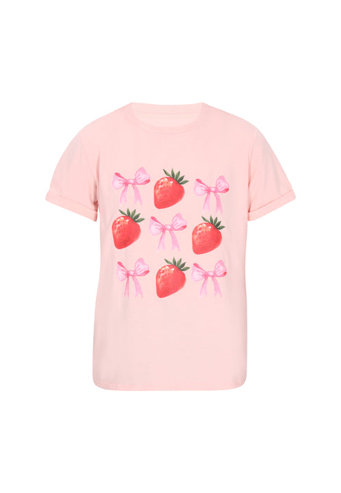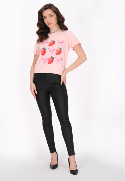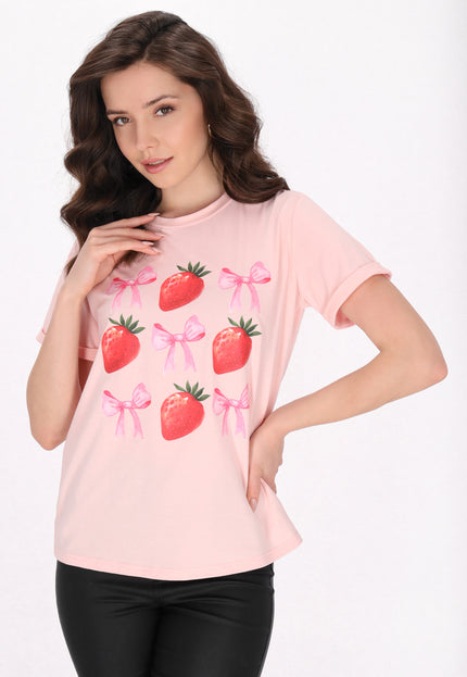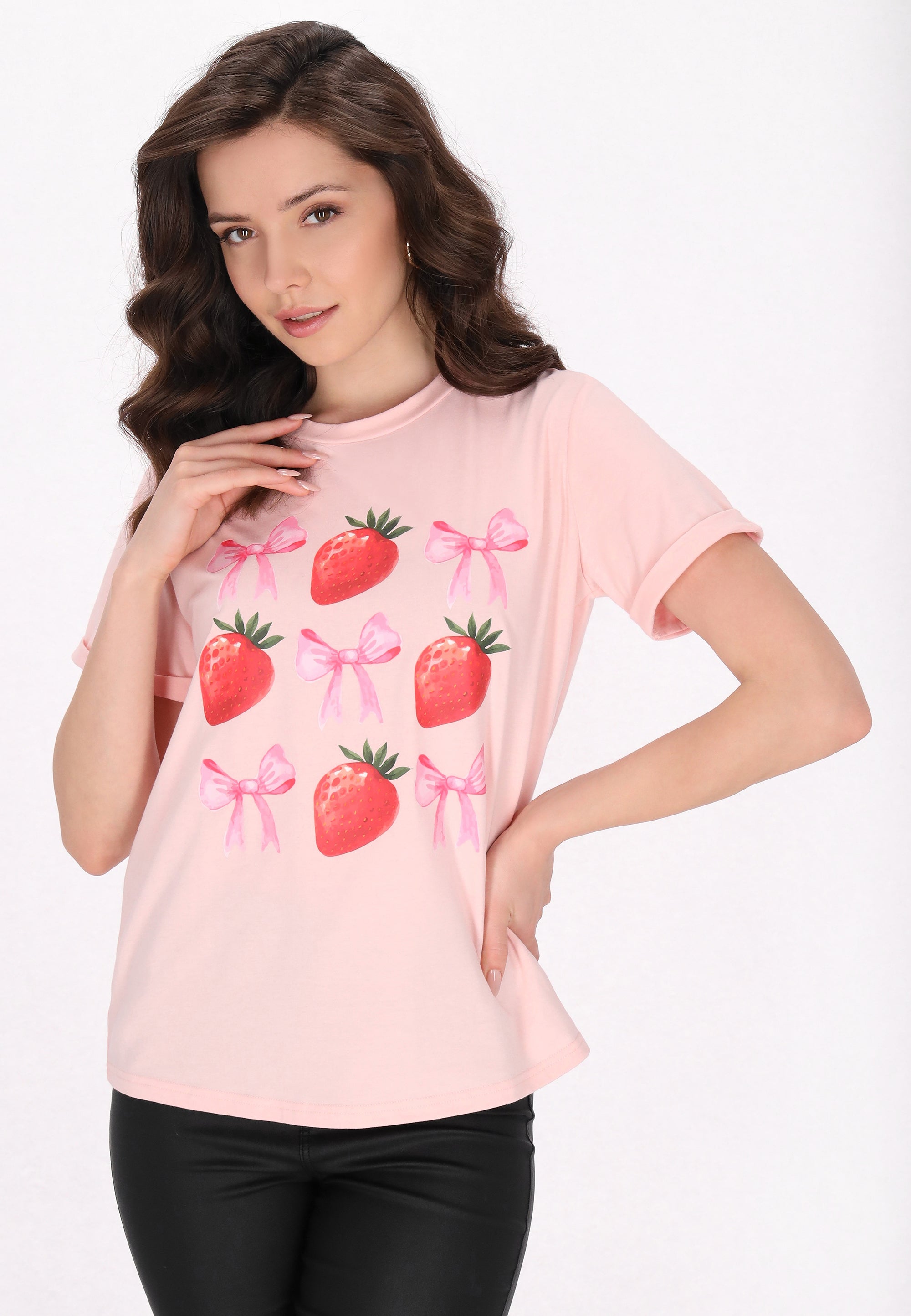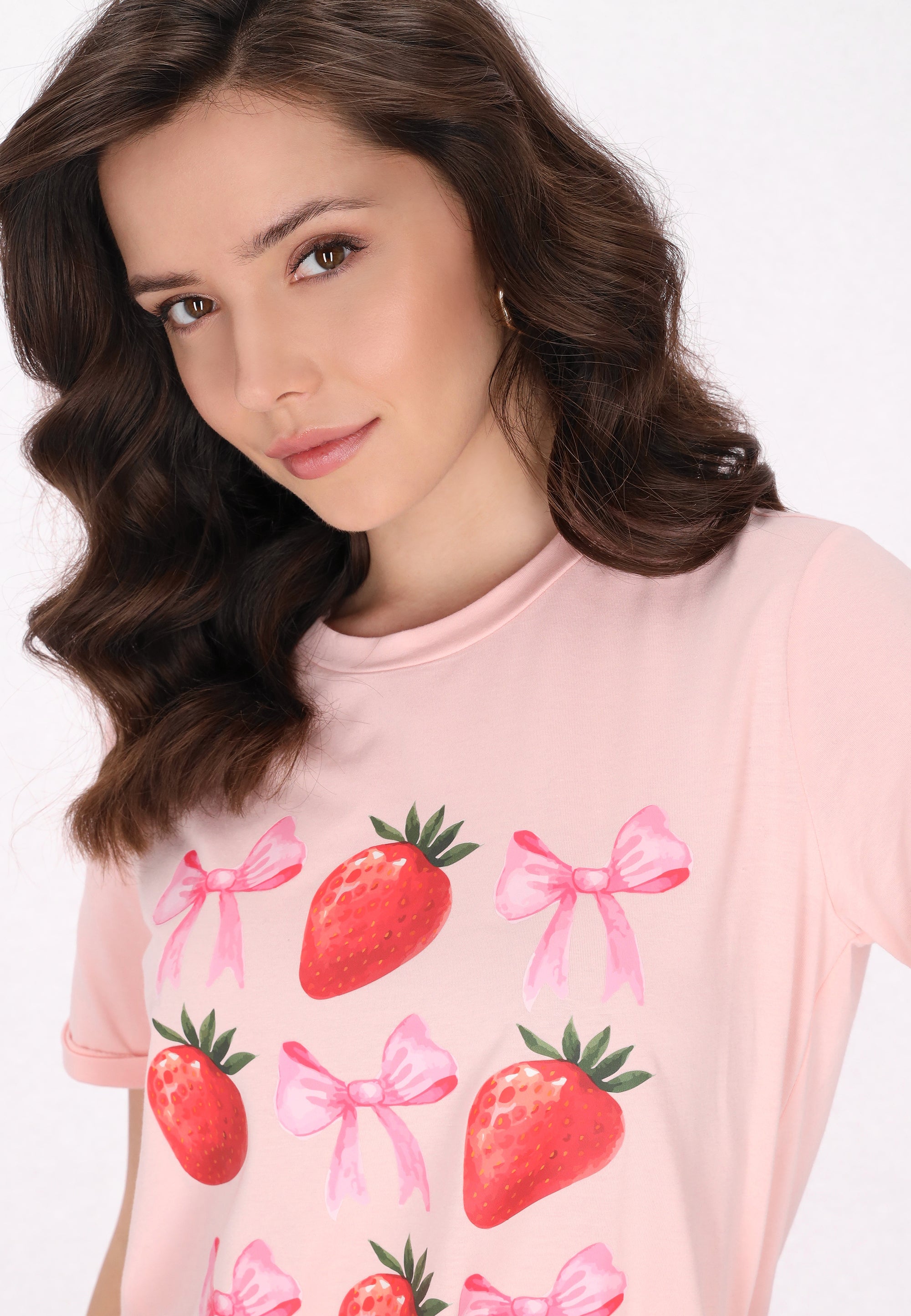 Discover a playful addition to your everyday Fashion Look Collection: this romantic-style T-shirt features a round neckline and short sleeves, adorned with a delightful print. Made from soft knitted fabric, it ensures comfort for daily wear. Its regular fit adds a trendy touch, making it ideal for pairing with various outfits.