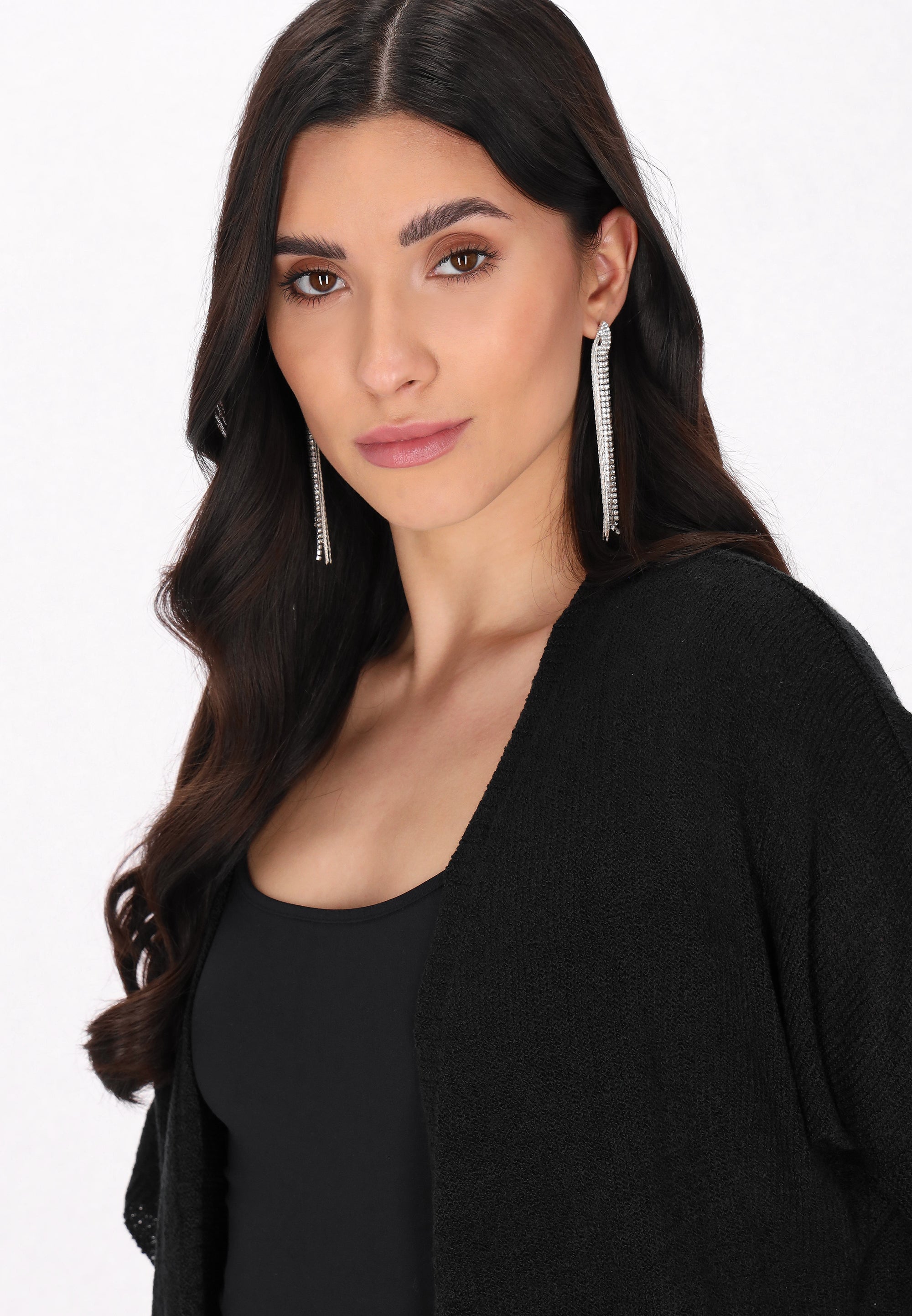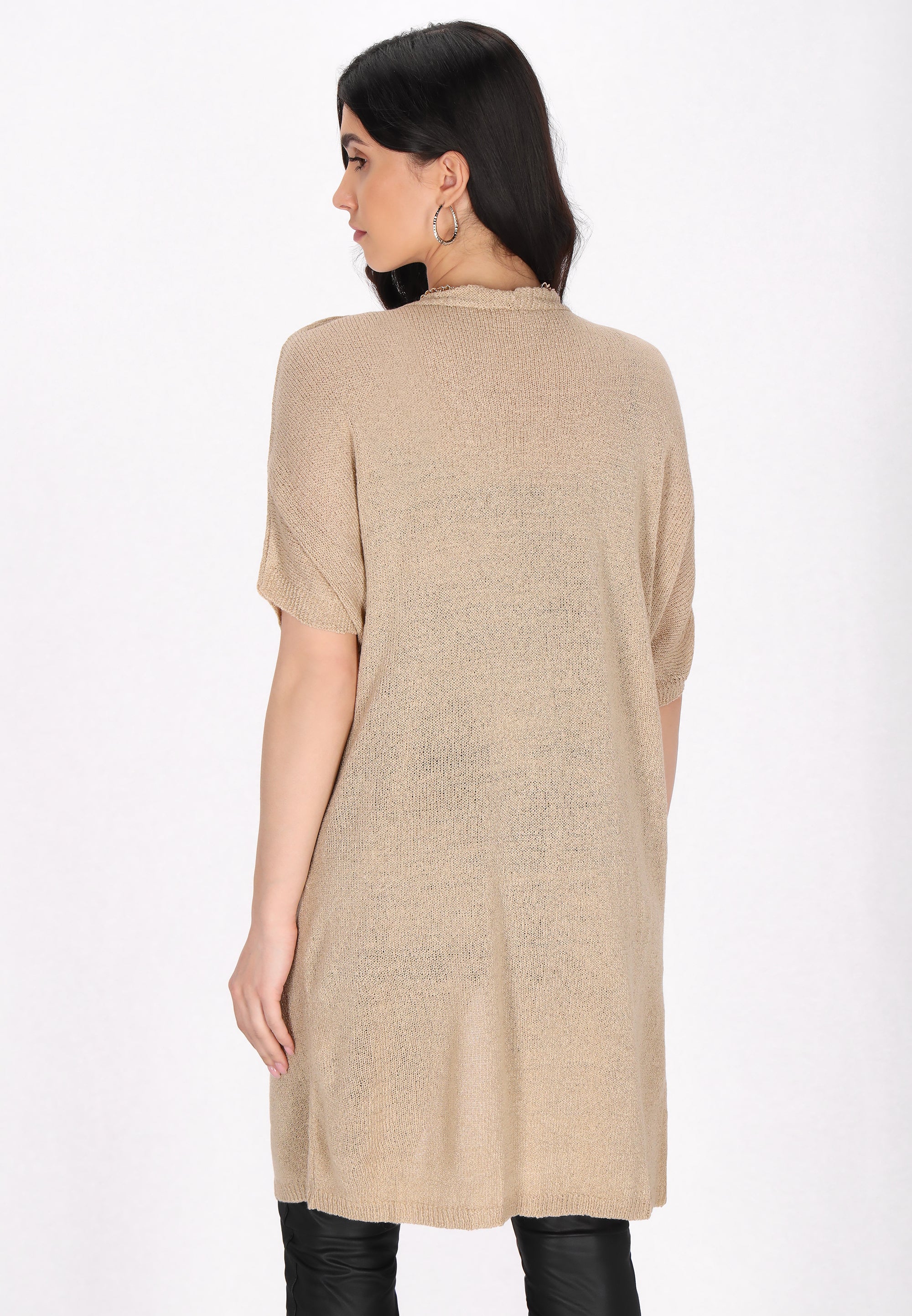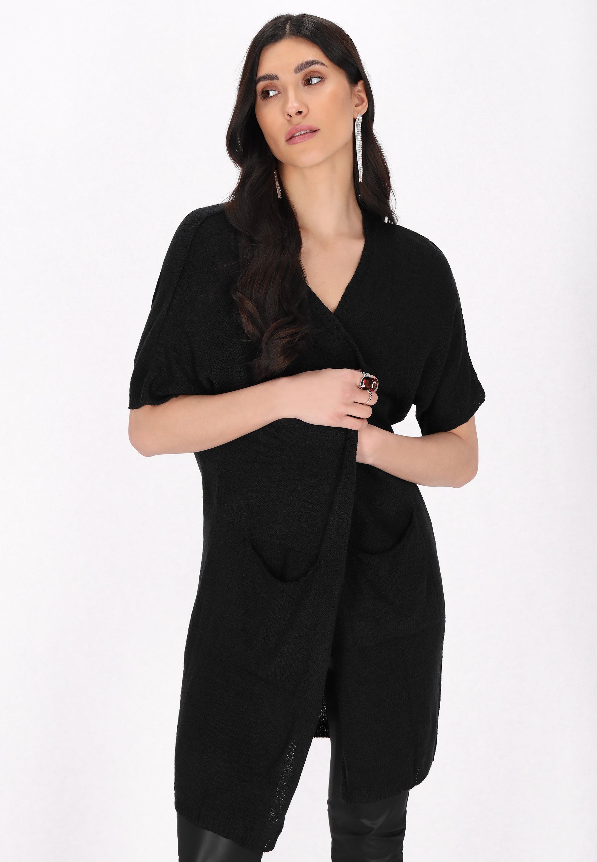 Stylish cardigan, designed for everyday styling. It has a knitted texture. It features an open front that flows beautifully. With a regular cut and short sleeves, as well as two pockets, this cardigan is comfortable, deal for adding a chic touch to any fashionable outfit. It is part of the Fashion Look Collection.
