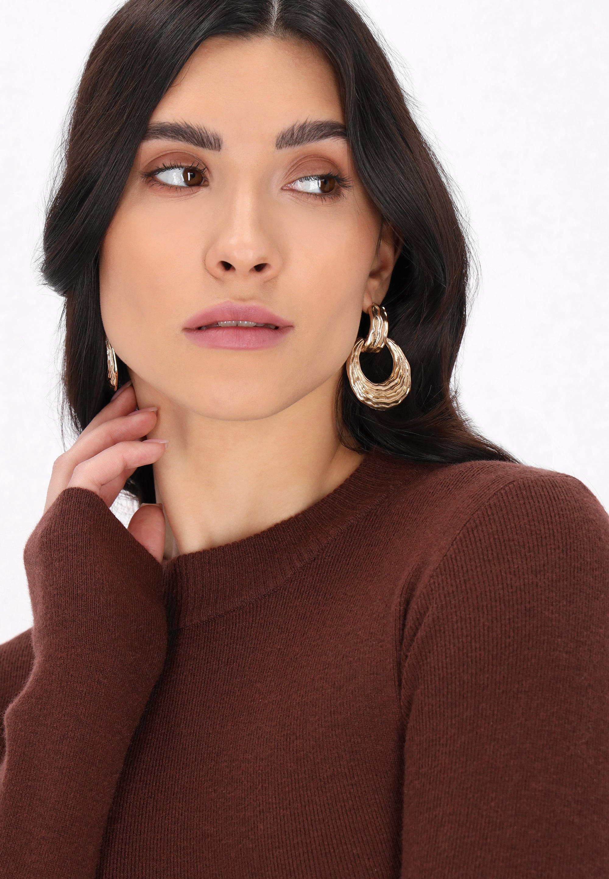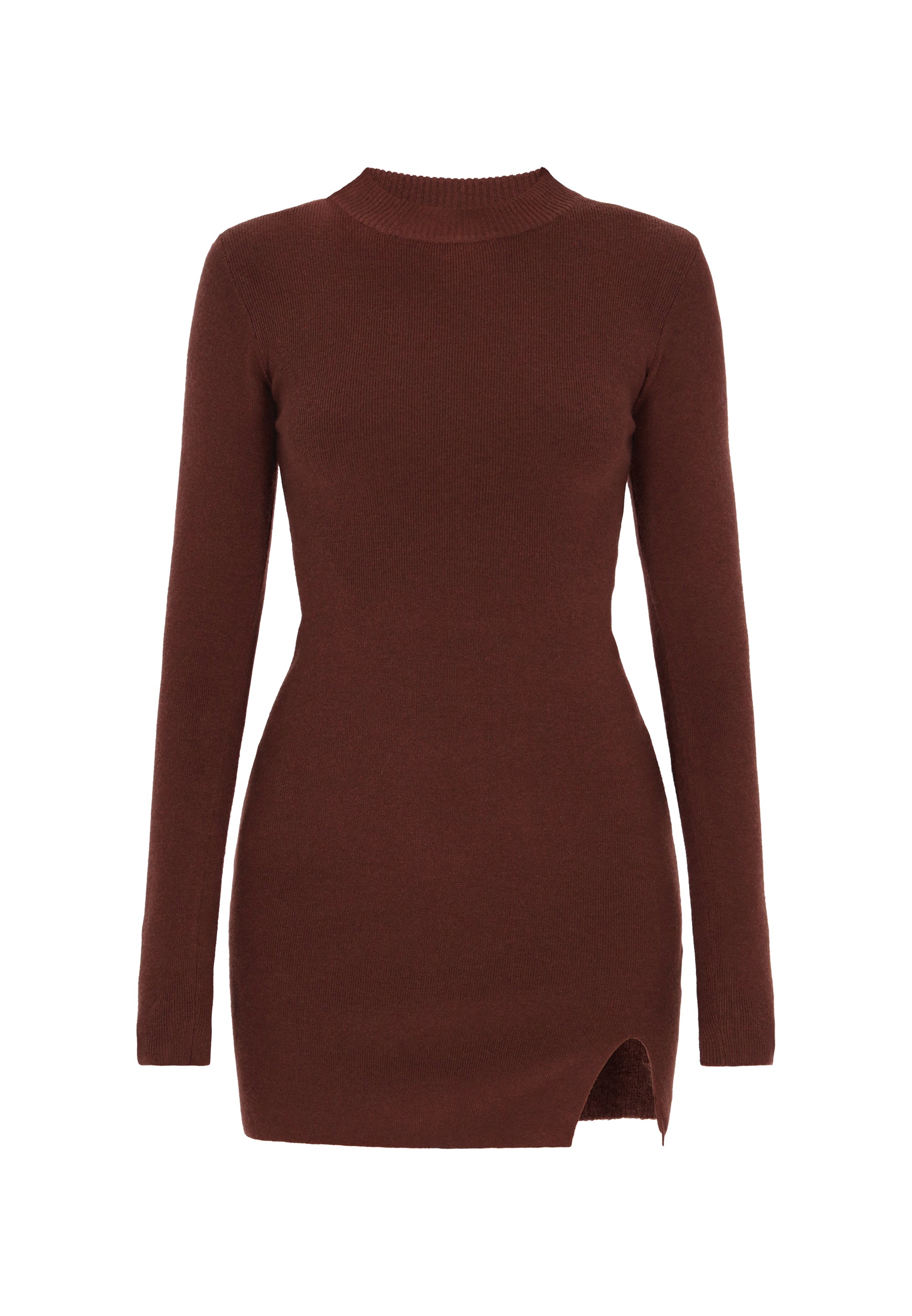This mini dress from the Fashion Look Collection is the perfect combination of comfort and style. Featuring a classic round neckline, long sleeves and a subtle slit for added chic, this ribbed knit dress hugs your curves while maintaining an elegant and sophisticated look. Its straight cut makes it infinitely versatile, perfect for casual outings, everyday fashion or dressing up with your favorite accessories. Soft, flattering and effortlessly chic, this is your new style piece.