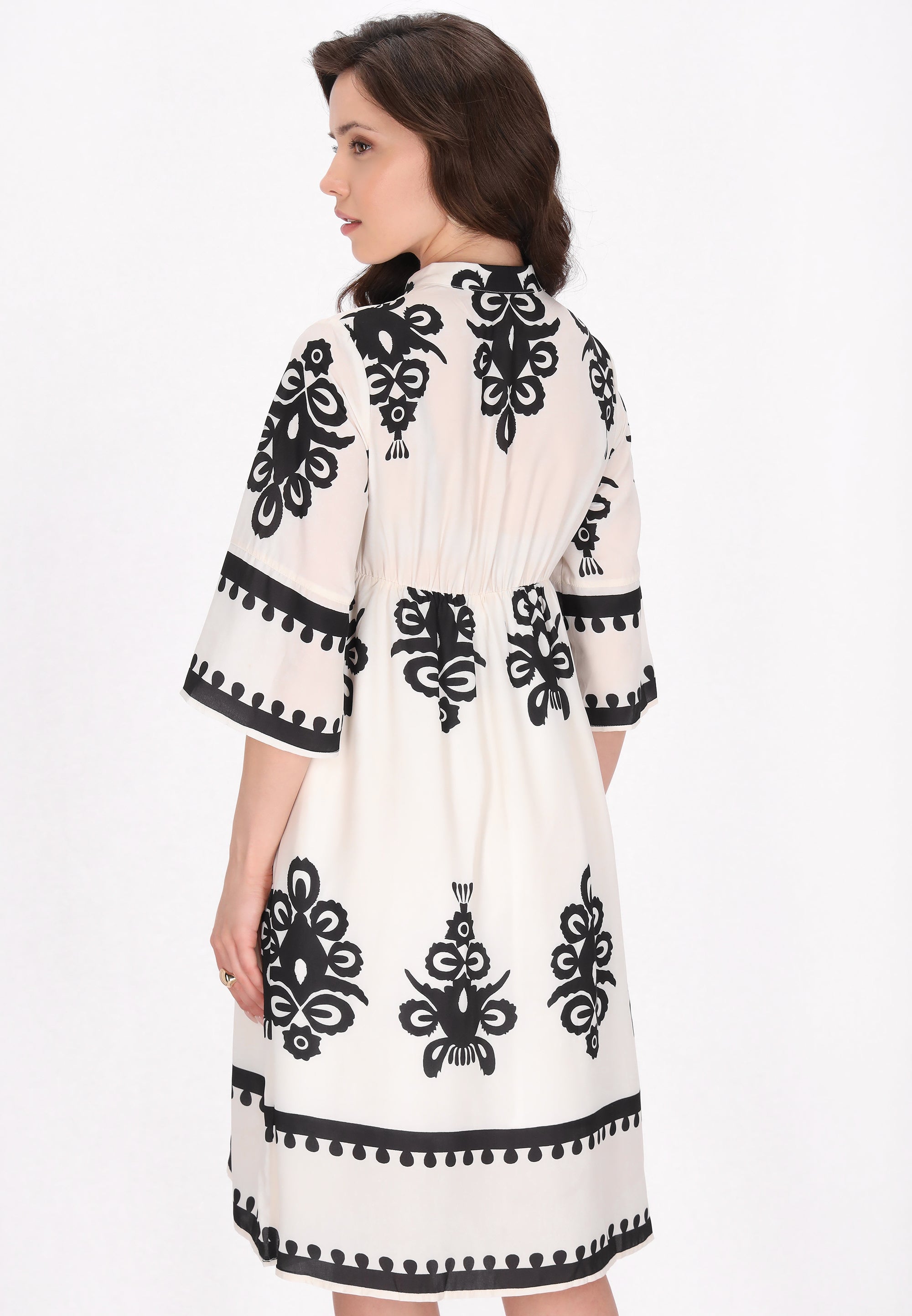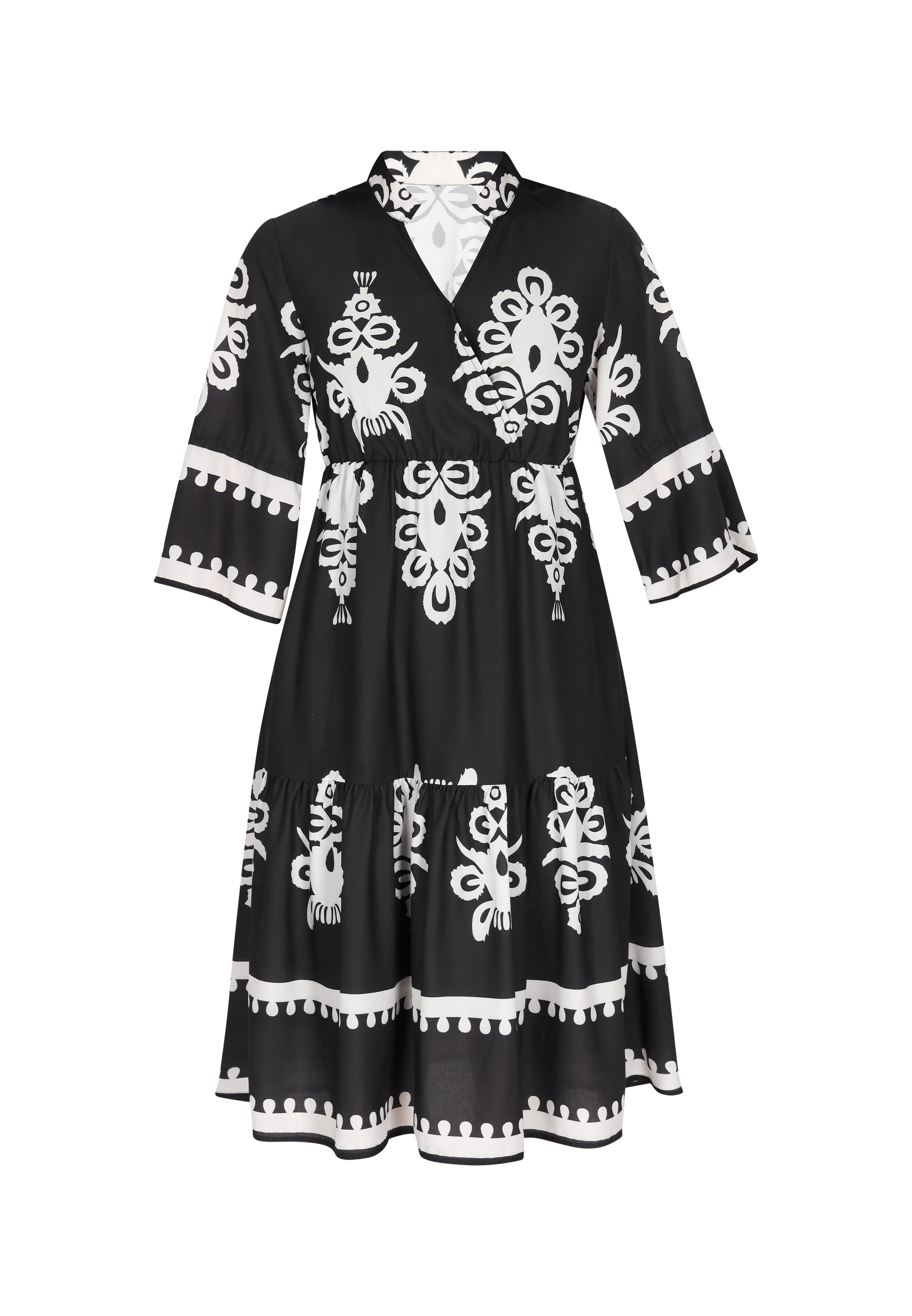 Discover this chic mini dress, perfect for everyday fashion. Designed in a relaxed fit with a notched neckline, it features 3/4 wide sleeves that add a touch of effortless flair. The tiered woven design, adorned with a striking folklore print, creates beautiful movement with every step. Ideal for casual outings, this must-have dress from the Fashion Look Collection ensures a stylish and sophisticated look.
