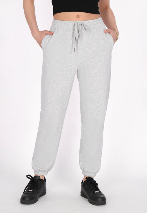 Opt for comfort and style with these loose-fitting sweatpants. Made of knitted material, they will be perfect for everyday wear and physical activity. The model has an elastic waistband with a drawstring and practical pockets that add functionality. The bottom of the legs is finished with elastic drawstrings for a better fit. Smooth pattern and sporty character make them an ideal part of the Fashion Look Collection - for lovers of comfort and casual style.
