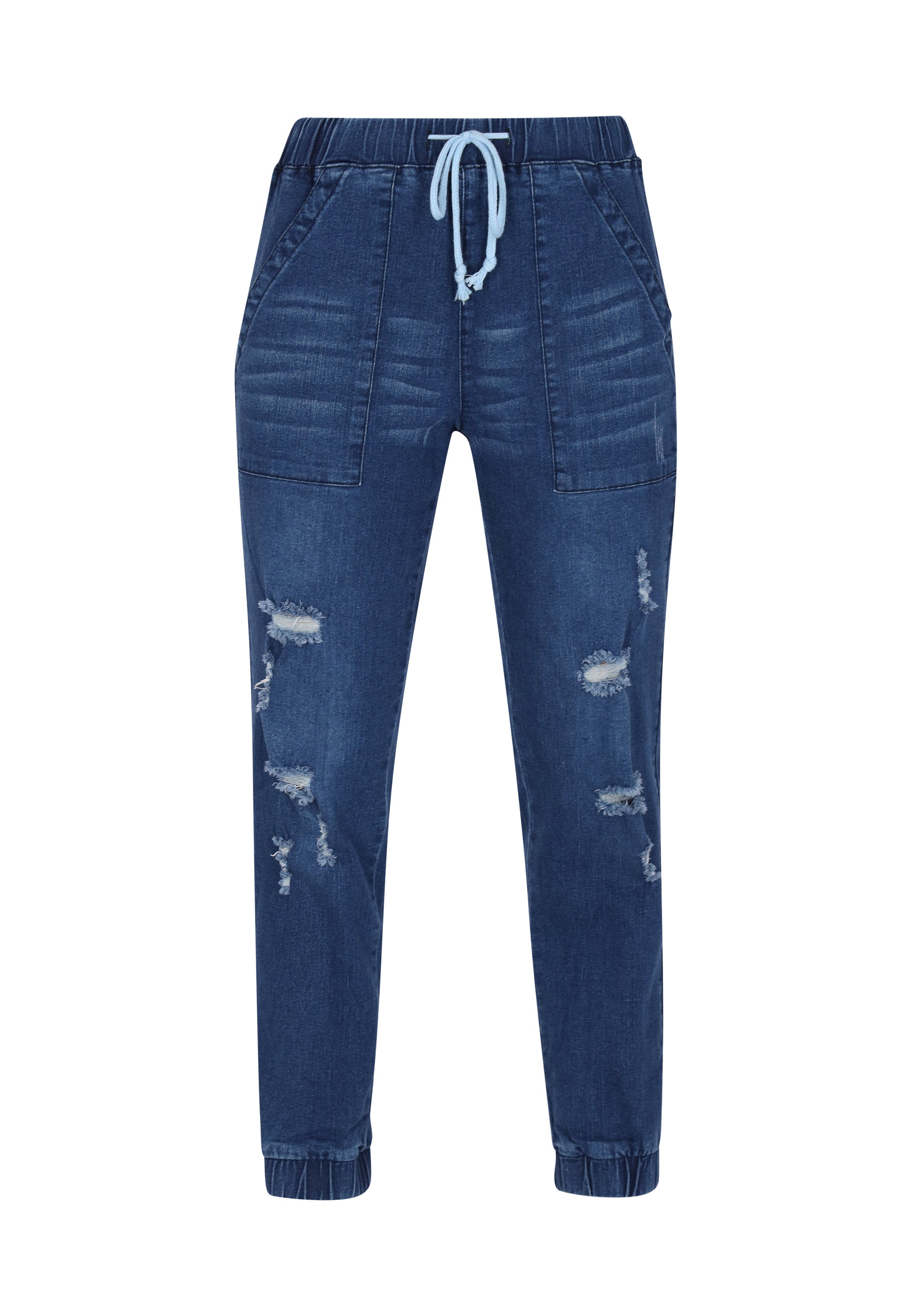 Discover the perfect blend of comfort and style with these joggers. Featuring a regular fit, long design, and elastic cuffs, they offer a trendy silhouette. The elastic waist with drawstring allows for an adjustable fit, while the washed denim adds casual flair. With pockets included, these stylish pants are ideal for everyday fashion from our Fashion Look Collection.